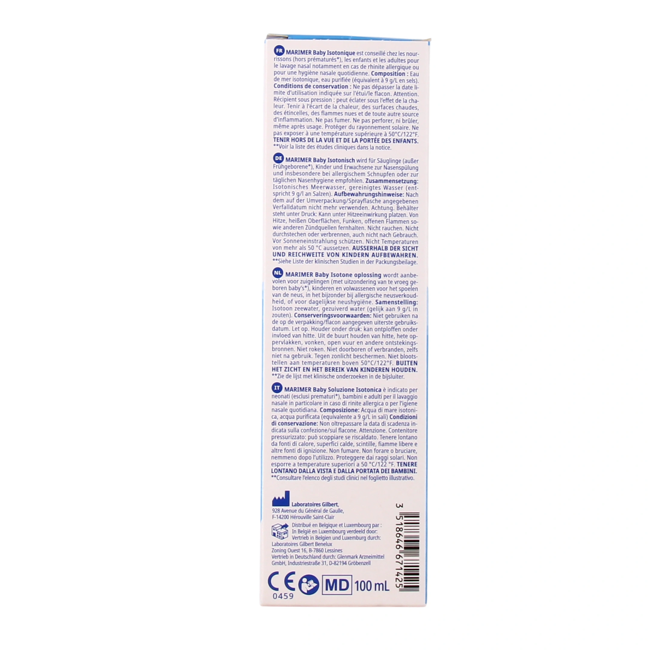 L'hygiène du nez de votre tout petit est très importante pour protéger sa muqueuse nasale des agressions extérieures, mais également pour prévenir les risques d'infections ORL. Convenant dès la naissance et jusqu'à 6 mois, le spray Marimer Baby Hygiène Nasale Quotidienne facilite l'évacuation des sécrétions nasales, pour aider votre enfant à respirer plus facilement. Il est également recommandé en cas de rhinite allergique.