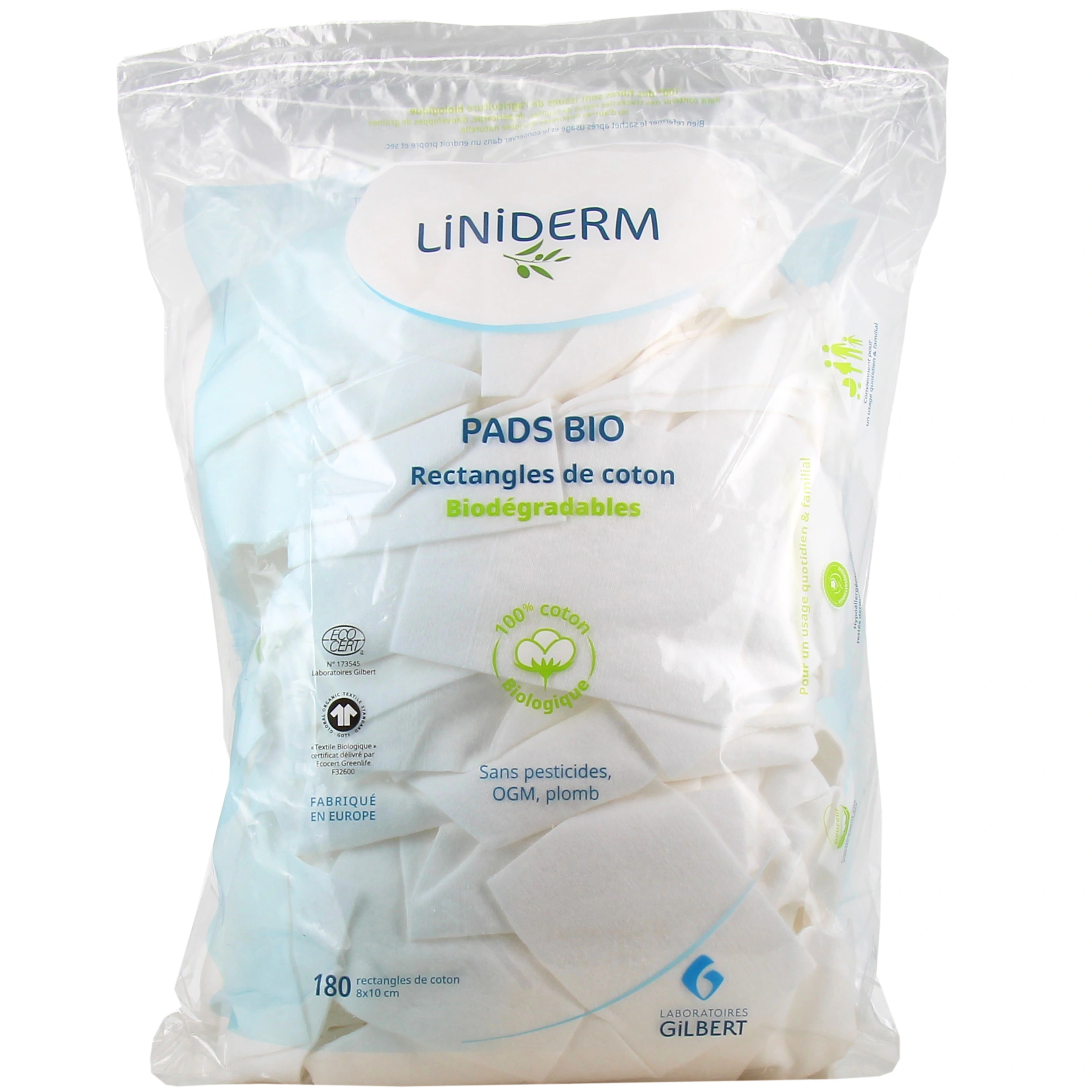 Ces rectangles de coton BIO fabriqués par les laboratoires Gilbert possèdent 2 faces identiques, non tissées, pour une douceur extrême, quelle que soit l'utilisation.