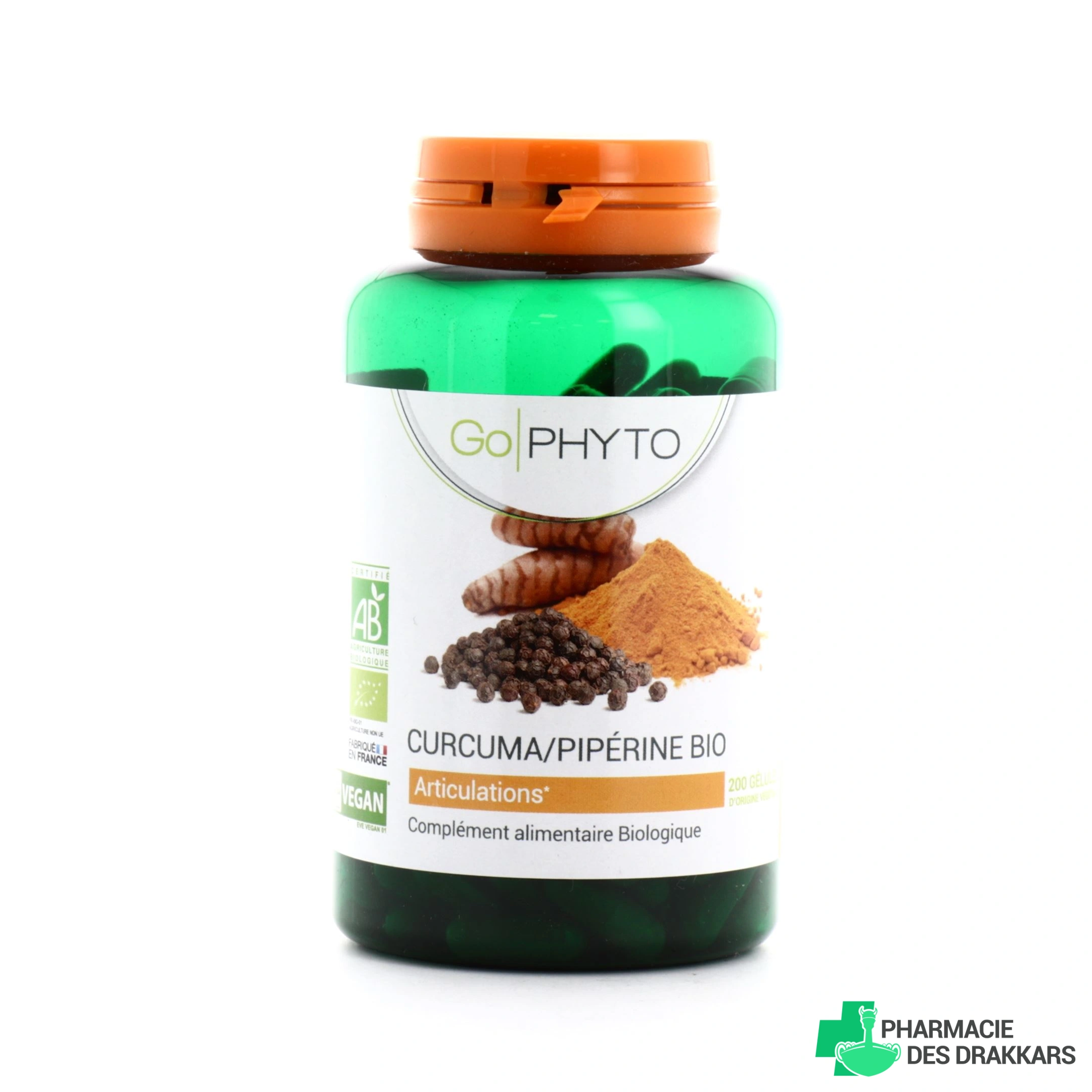 Conditionnement proposé sur notre pharmacie en ligne pour Go Phyto Curcuma Pipérine Bio Articulations : Pot de 200 gélules