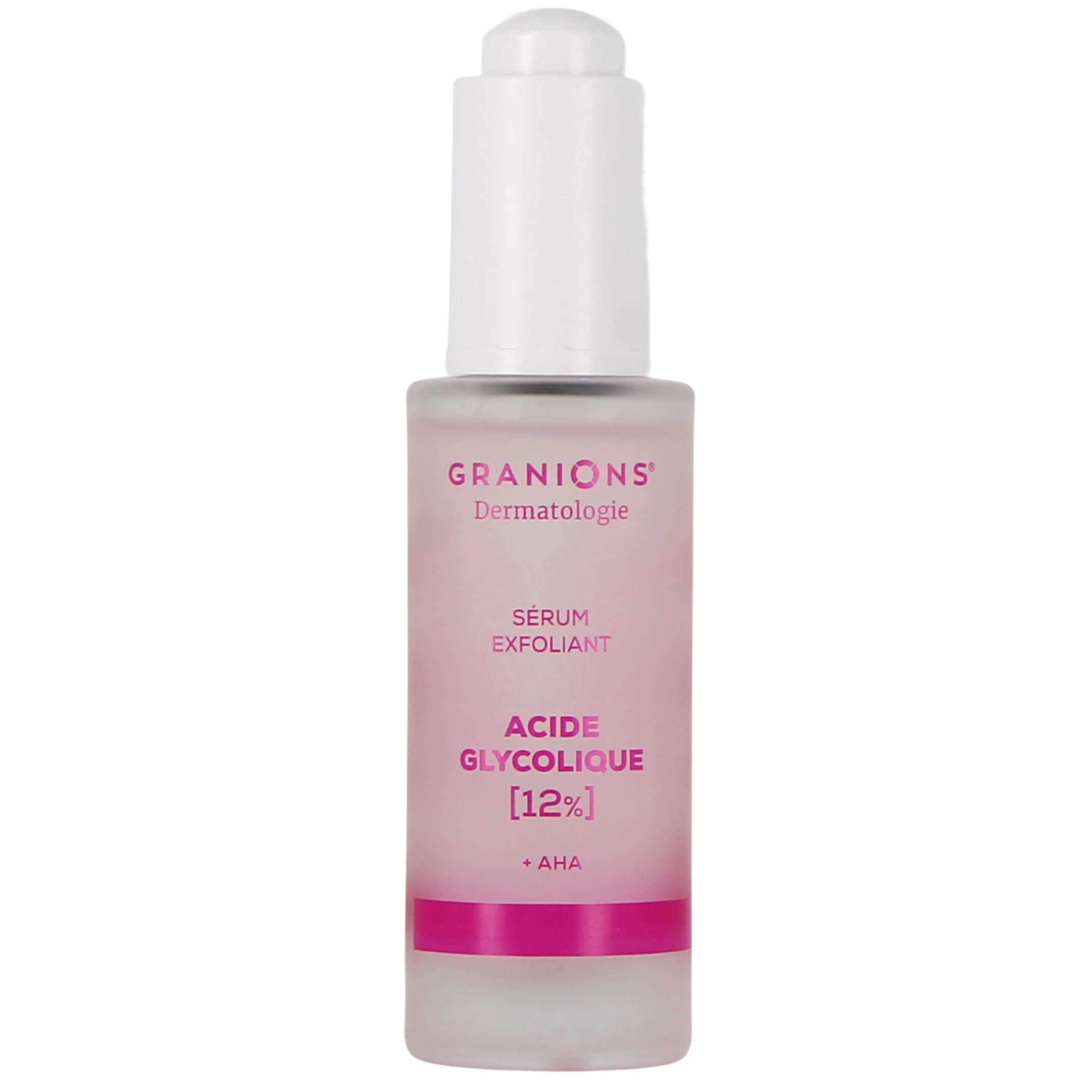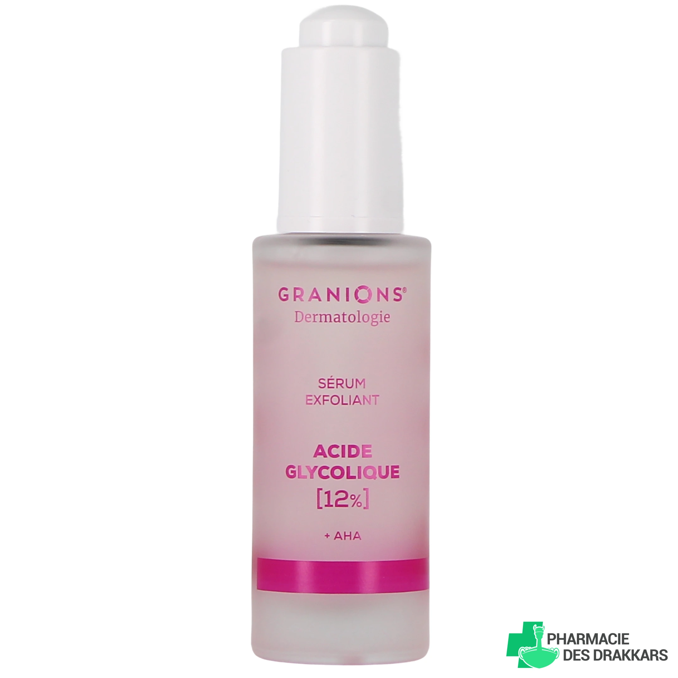 Conditionnement disponible sur la pharmacie en ligne des drakkars pour le sérum exfoliant Granions Dermatologie : flacon-pipette de 30 ml.