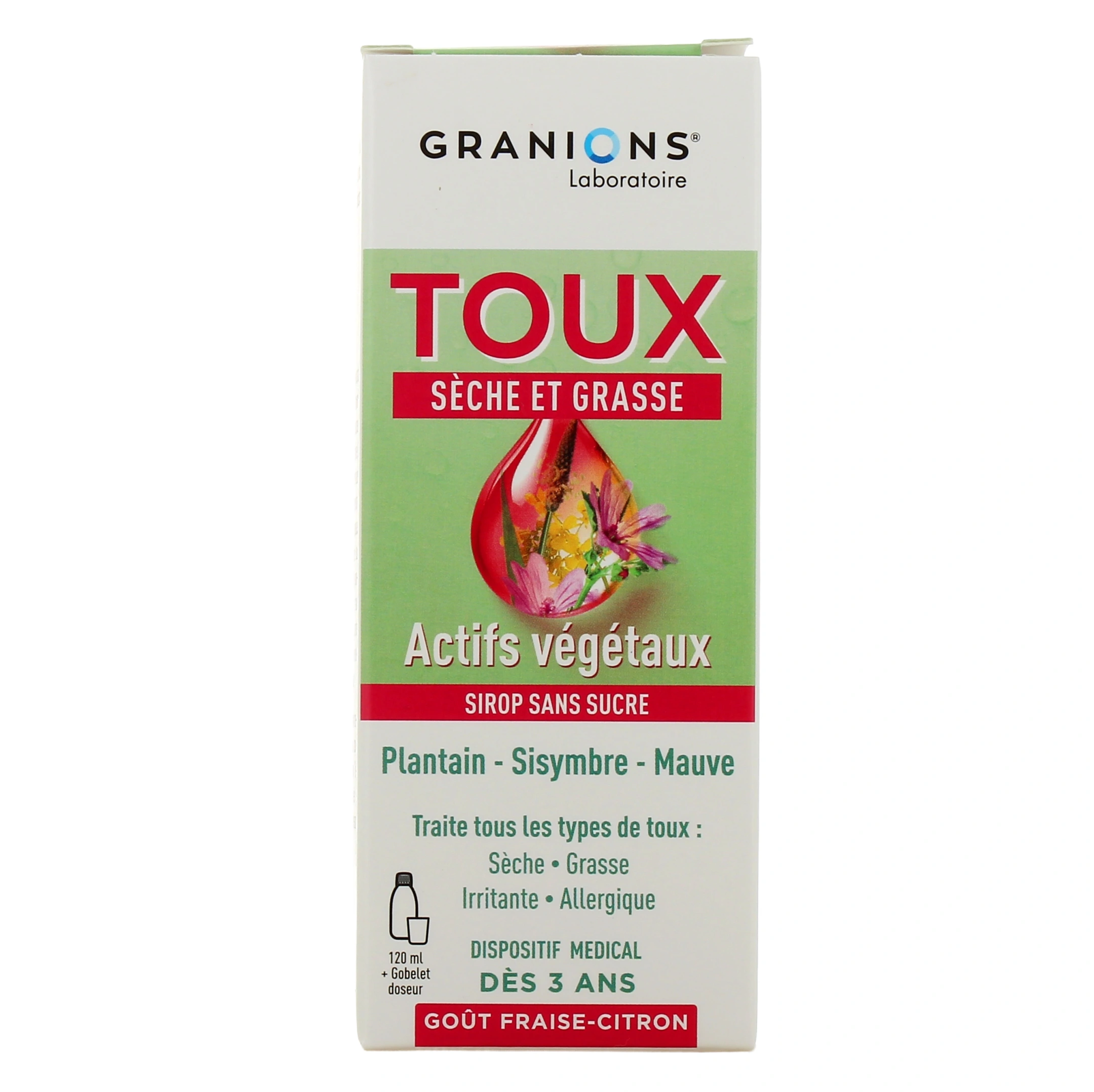 Granions toux sèche et grasse est un sirop sans sucre permettant de traiter et soulager les personnes souffrant de toux sèche, grasse, irritante ou bien allergique.