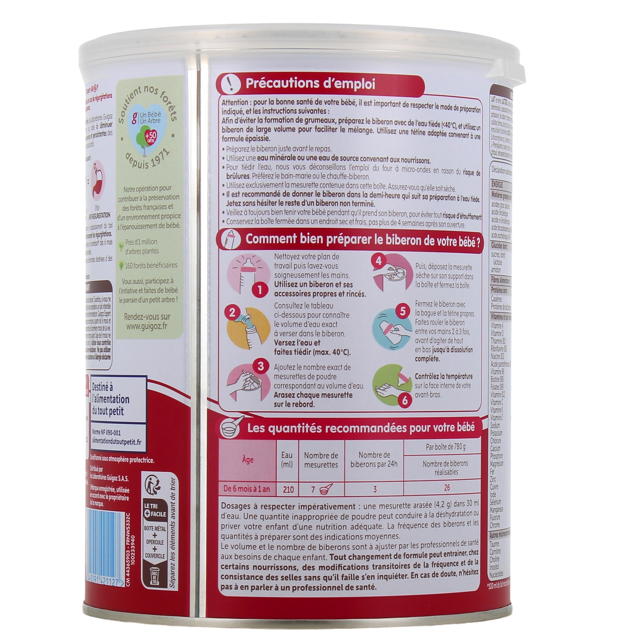 Avis Important : Le lait maternel est, pour chaque nourrisson, l'aliment idéal et naturel. Toutefois, si vous ne pouvez pas ou ne souhaitez pas allaiter, le Corps Médical vous conseillera un lait infantile pour votre enfant. N'en changez pas sans demander l'avis de votre médecin. Guigoz Expert AR 2 est un élément de l'alimentation diversifiée des nourrissons à partir de 6 mois et ne peut être utilisé comme substitut du lait maternel pendant les 6 premiers mois de la vie. La décision d'introduire des aliments complémentaires y compris avant l'âge de 6 mois ne devrait être prise que sur avis d'un professionnel de santé. À utiliser sous contrôle médical. Ne pas administrer par voie parentérale.