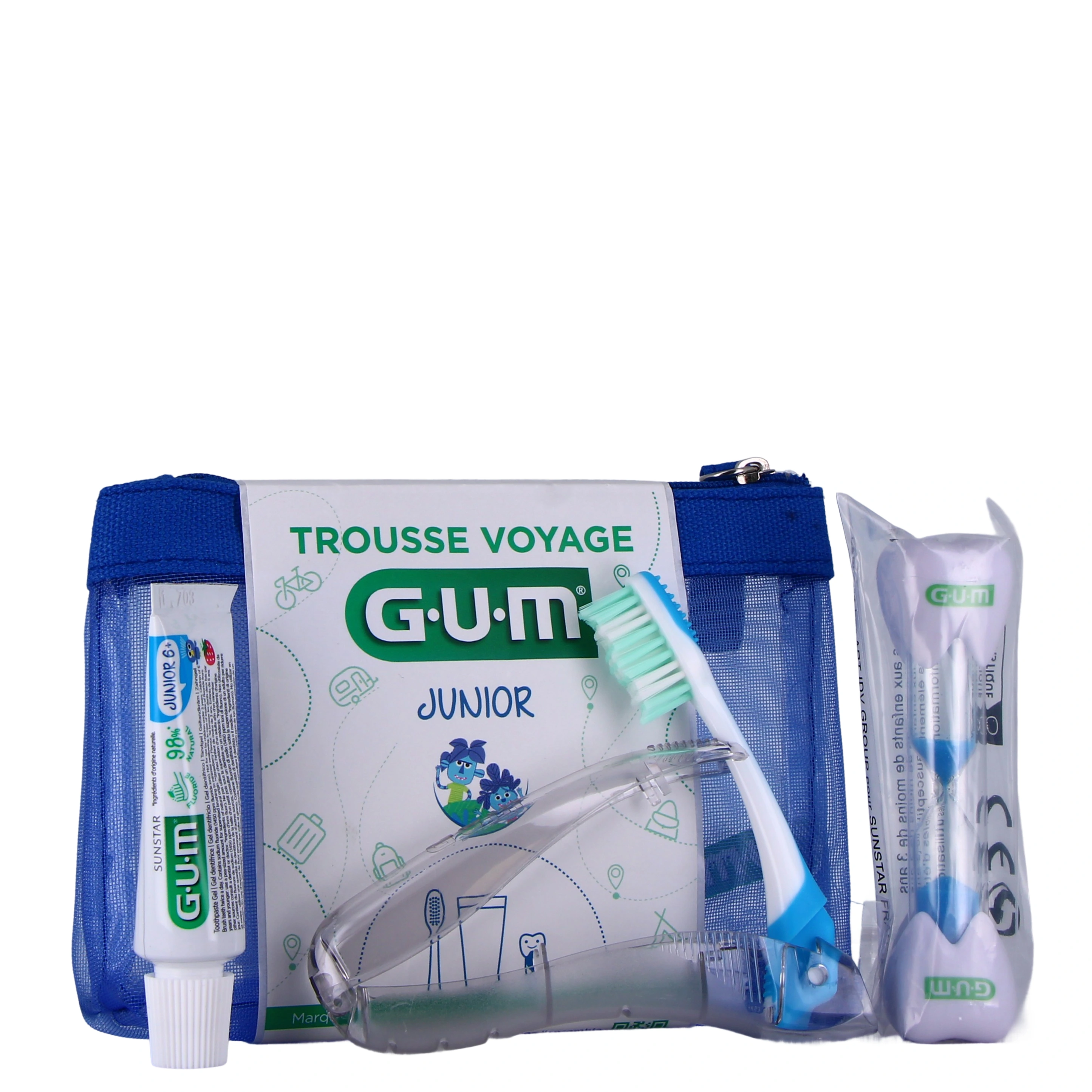 Le kit de voyage junior Gum contient le nécessaire pour une hygiène orale parfaite durant vos vacances, dans une trousse bleue pratique et de petite taille. Elle est idéale pour les plus petits.