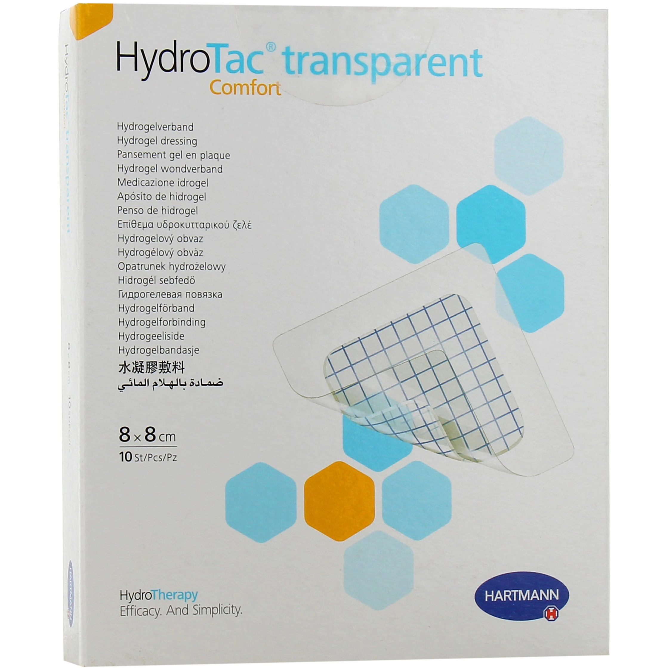 Présentations proposées par votre pharmacie en ligne : Hartmann HydroTac Comfort Transparent 8 cm x 8 cm.