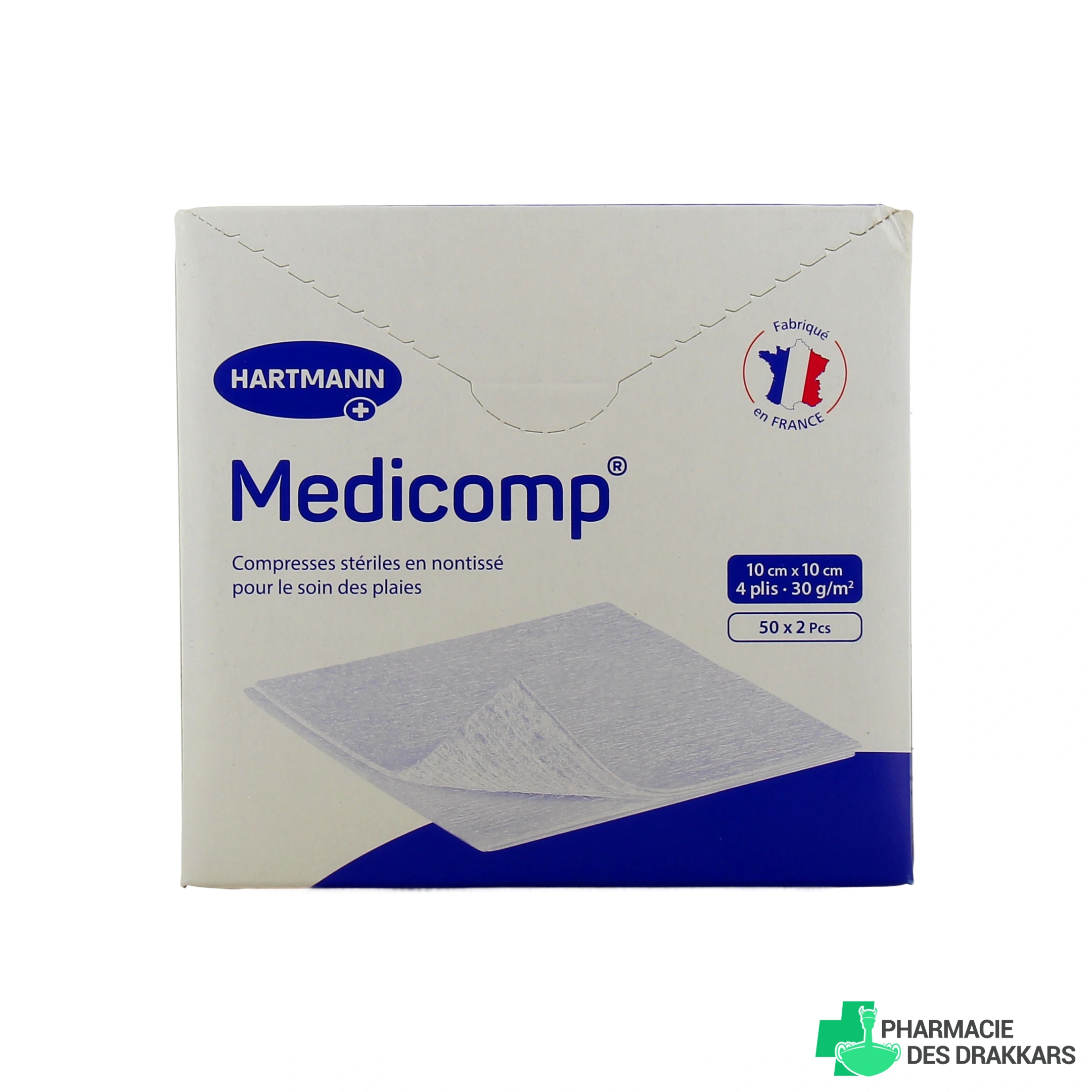 Conditionnements proposés par notre pharmacie en ligne pour les compresses stériles en nontissé Hartmann Medicomp :