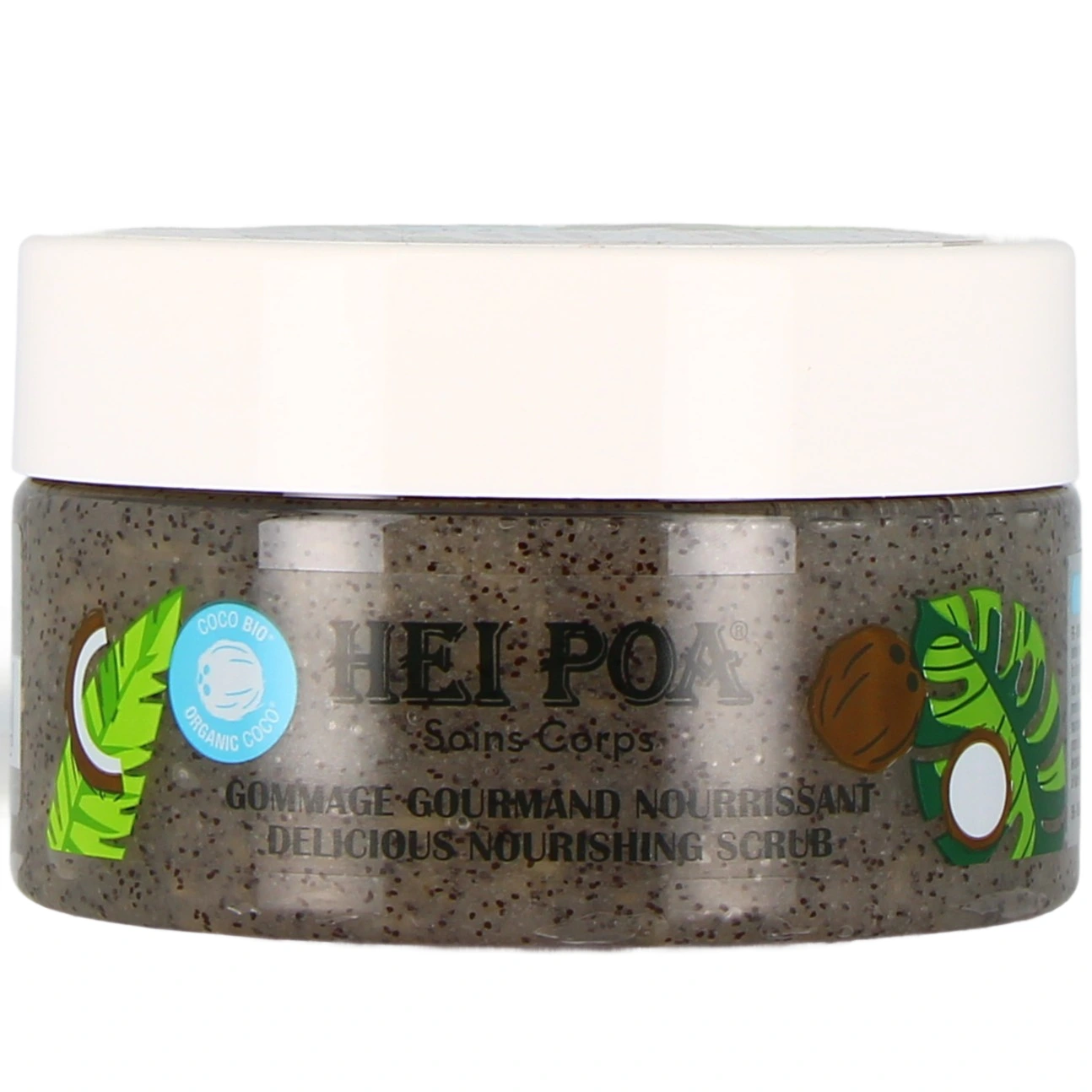 Présentation disponible pour le gommage corps gourmand nourrissant Hei Poa sur notre pharmacie en ligne : Pot de 260 g