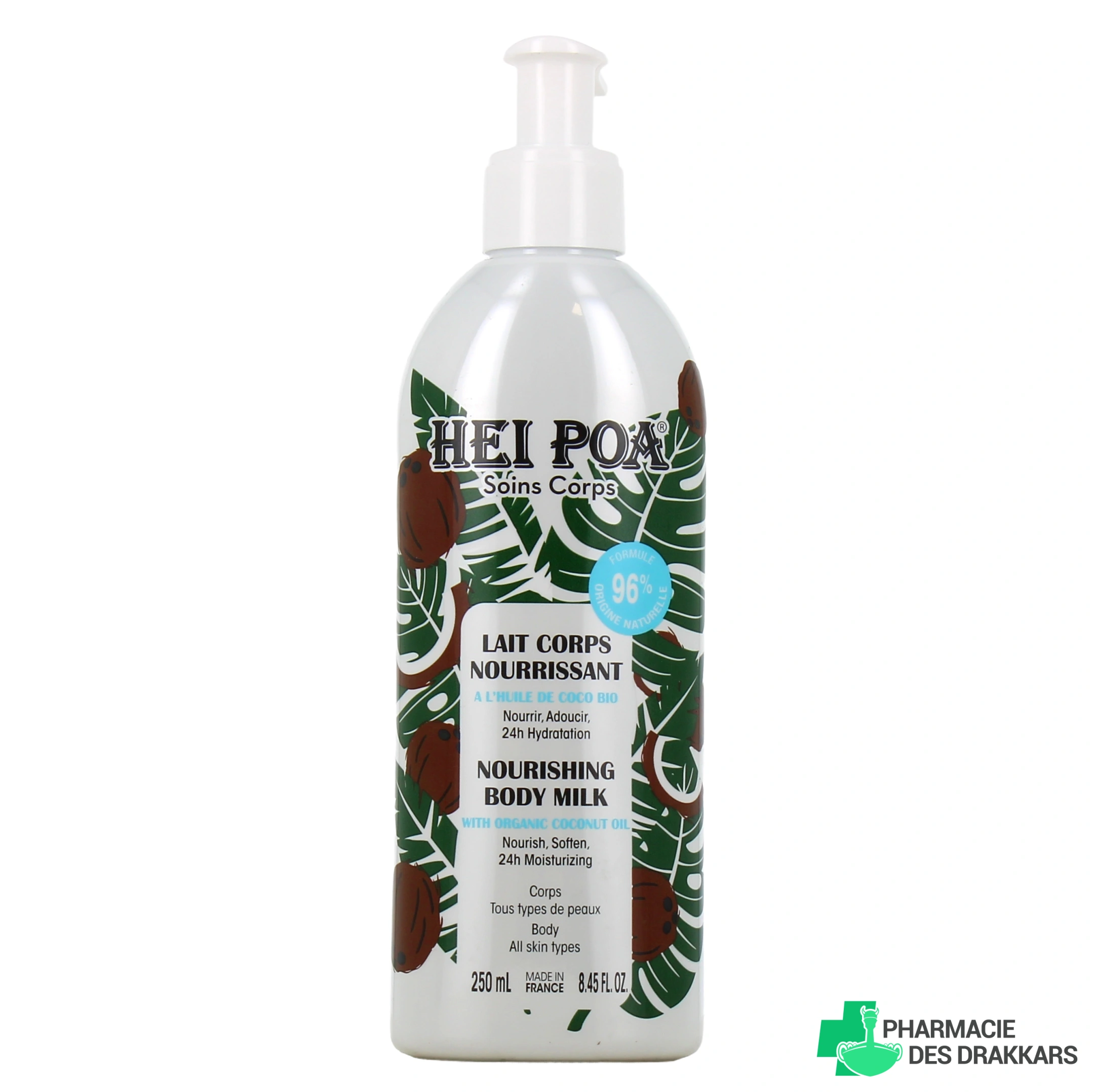Vous pourrez retrouver le lait Corps Nourrissant à l'Huile de Coco Bio Hei Poa dans les présentations suivantes chez Pharmacie des Drakkars : flacon pompe de 250 ml.