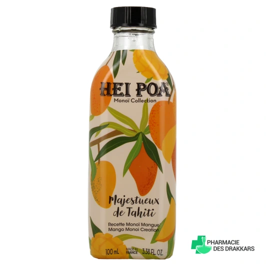 Le Monoï Majestueux de Tahiti d'Hei Poa recette Monoï / Mangue est à retrouver dans les présentations suivantes chez Pharmacie des Drakkars : flacon de 100 ml.