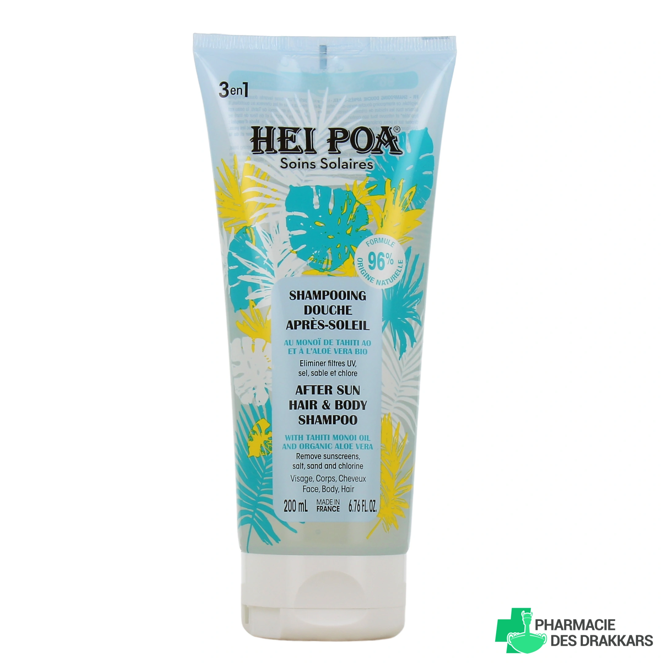 Contenance proposée par votre pharmacie en ligne : tube de 150 ml ou de 200 ml de shampooing douche après-soleil au Monoï Hei Poa.
