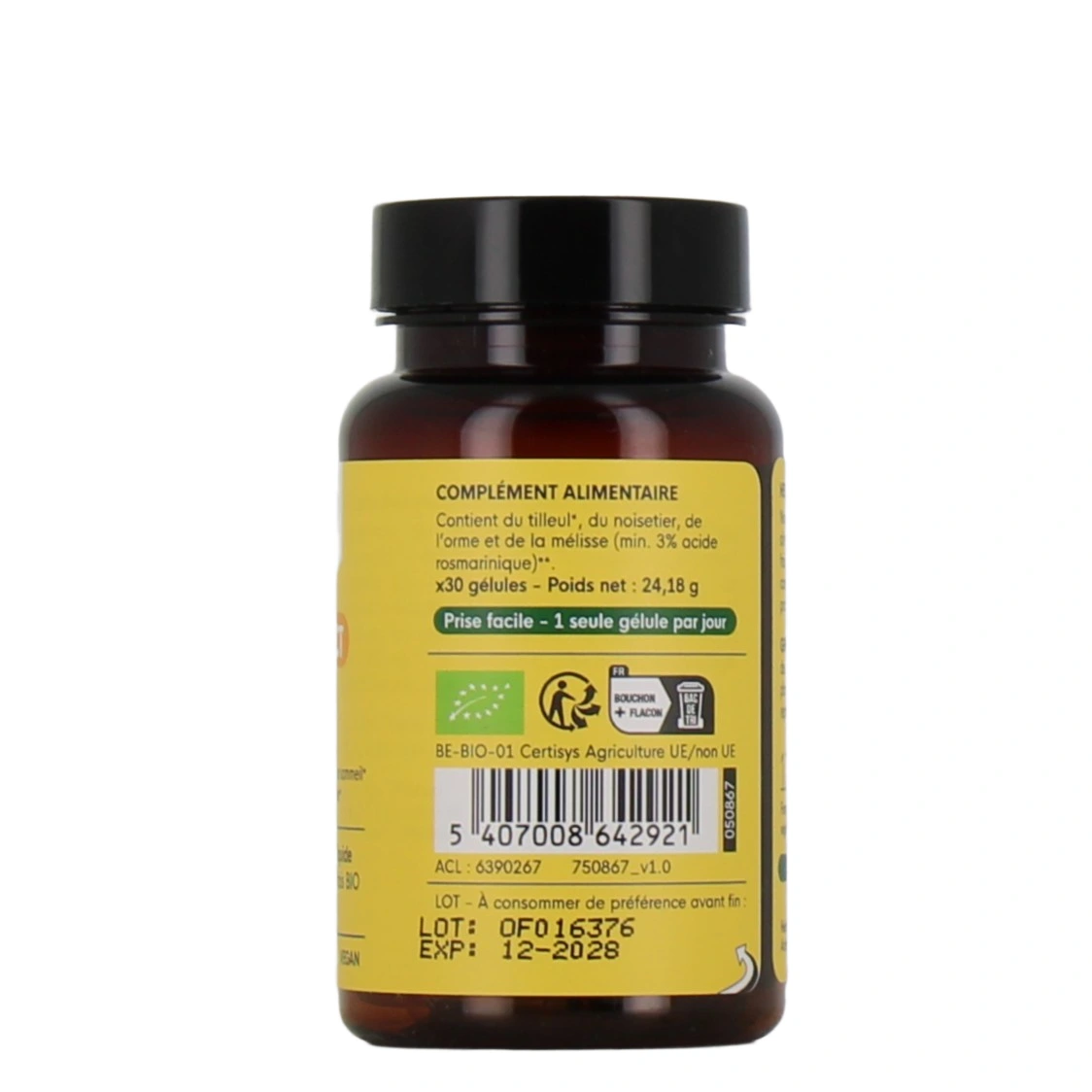 Formulé sans gluten, sans gélatine, sans alcool et sans mélatonine, Herbalgem Gemmocaps Stress-Protect Sommeil est composé d'un concentré liquide de bourgeons frais et biologiques, associé à de la mélisse. Ce complément alimentaire propose une absorption optimale des actifs. Les gélules contiennent du noisetier, de l'orme et du tilleul qui favorise un bon sommeil. La mélisse aide à l'endormissement et contribue à une relaxation optimale. Les bourgeons frais et biologiques naturellement concentrés en polyphénols sont reconnus pour leur capacité antioxydante.