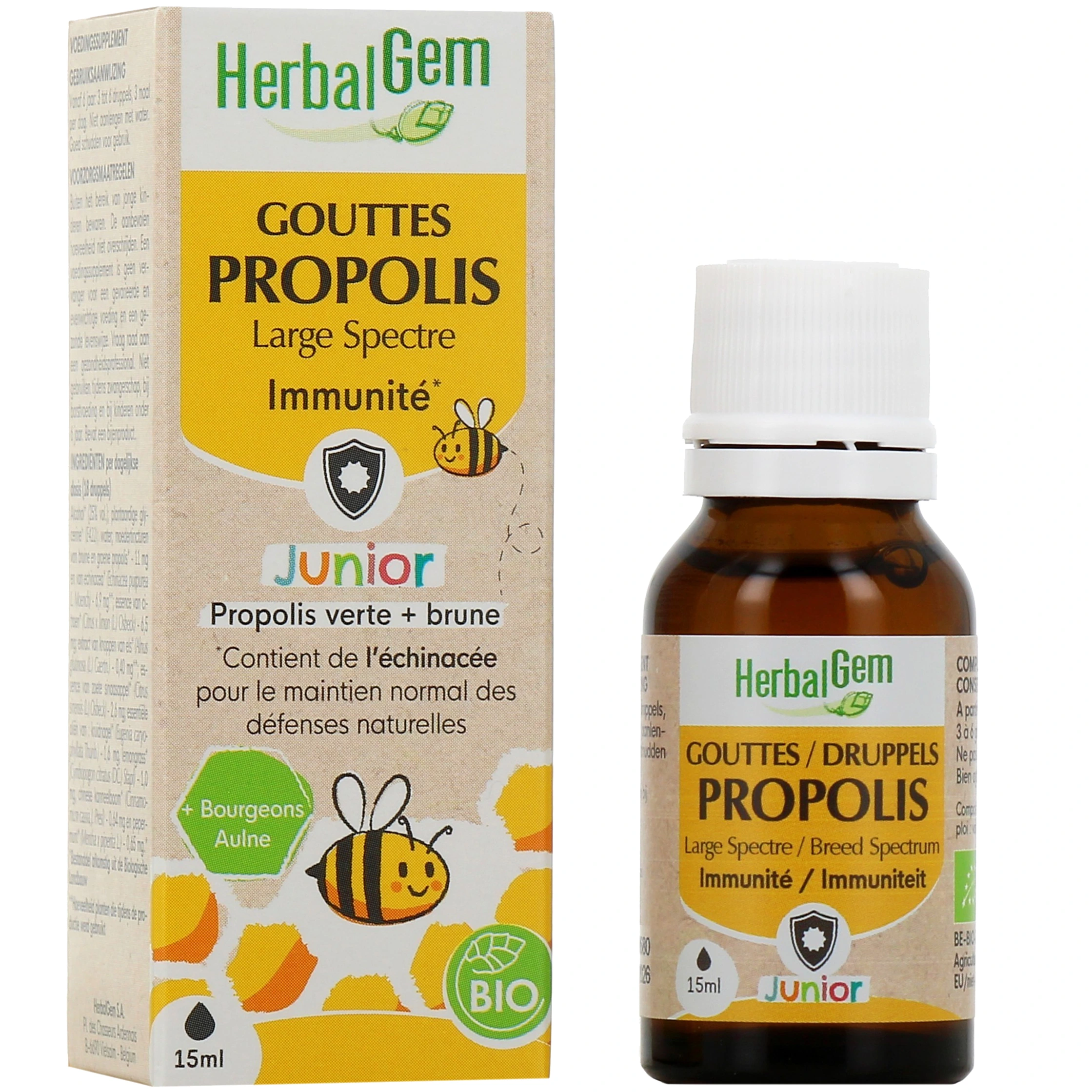 Présentation disponible pour les gouttes Propolis Junior Herbalgem sur notre pharmacie en ligne : Flacon de 15 ml