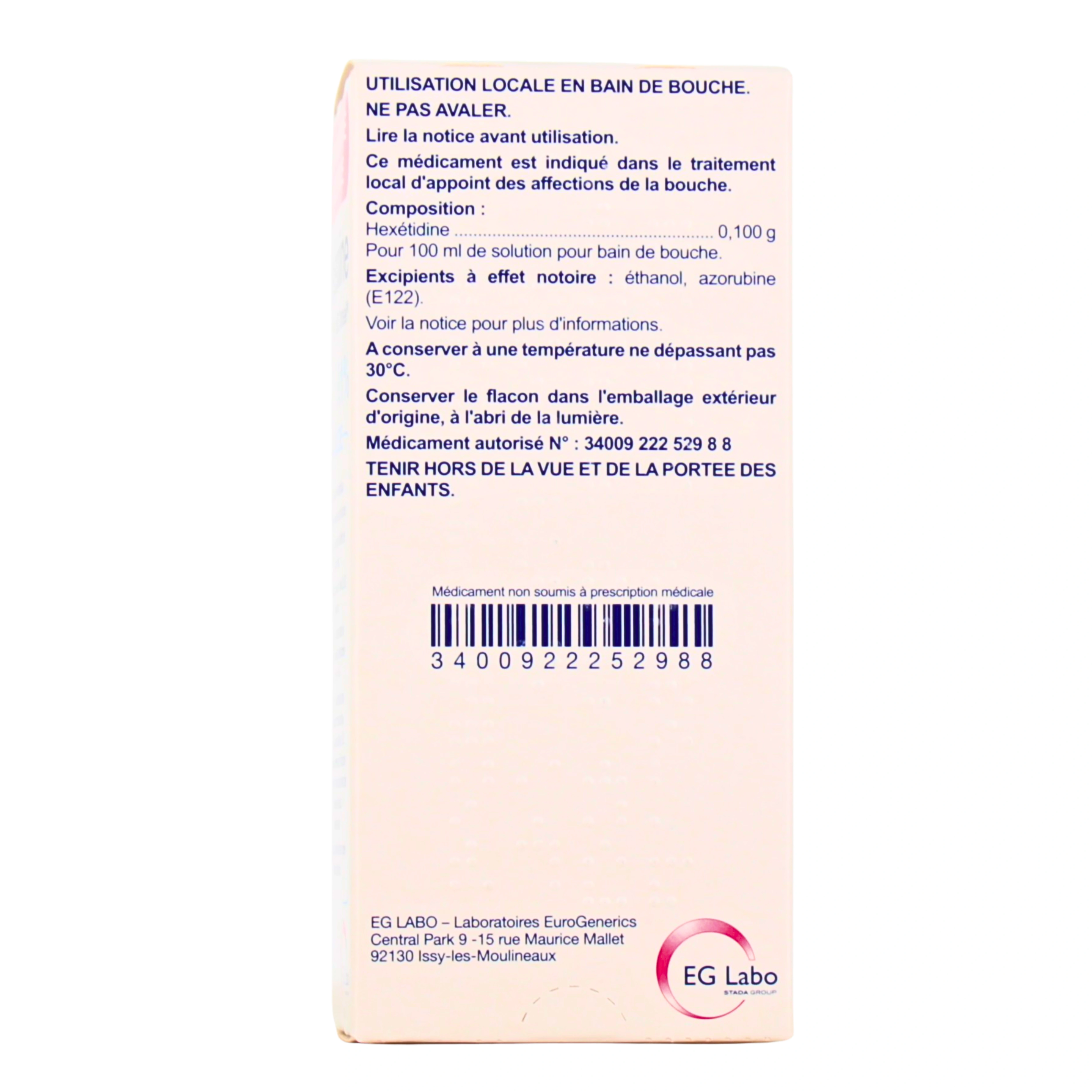 - Flacon de 200 ml de solution pour bain de bouche + gobelet doseur du laboratoire EG Labo Conseil ;