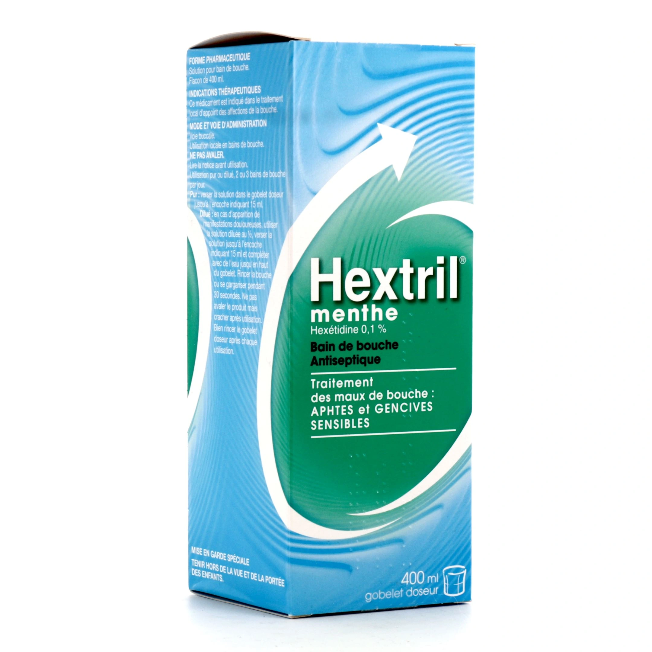 La solution antiseptique en bain de bouche Hextril contient un antiseptique, l'Hexétidine, dosé à 0,1%. Ce bain de bouche permet donc de traiter et soulager les maux et les petites blessures de la bouche, comme les aphtes. Il permet également d'apporter un traitement d'appoint suite à une opération des gencives ou des dents, comme l'opération des dents de sagesse par exemple.