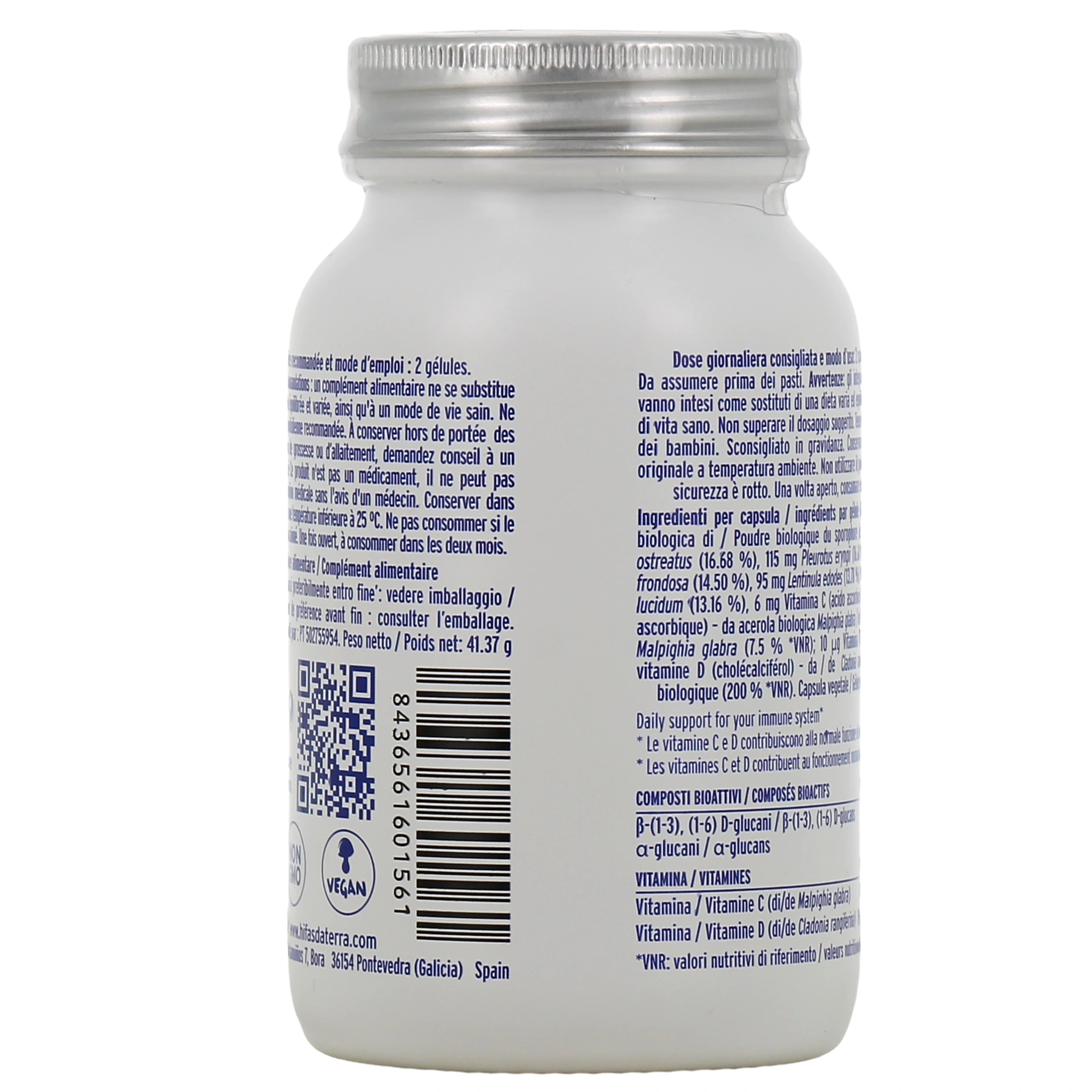 La composition de ces gélules est naturelle : elle convient aux coeliaques et aux intolérants au lactose, aux végétariens et aux végans. Elle contient des ingrédients issus de l’agriculture biologique, et sans OGM. Le complément alimentaire Hifas da Terra Bio-Defense contient des vitamines C et D naturelles qui contribue au fonctionnement normal du système immunitaire.