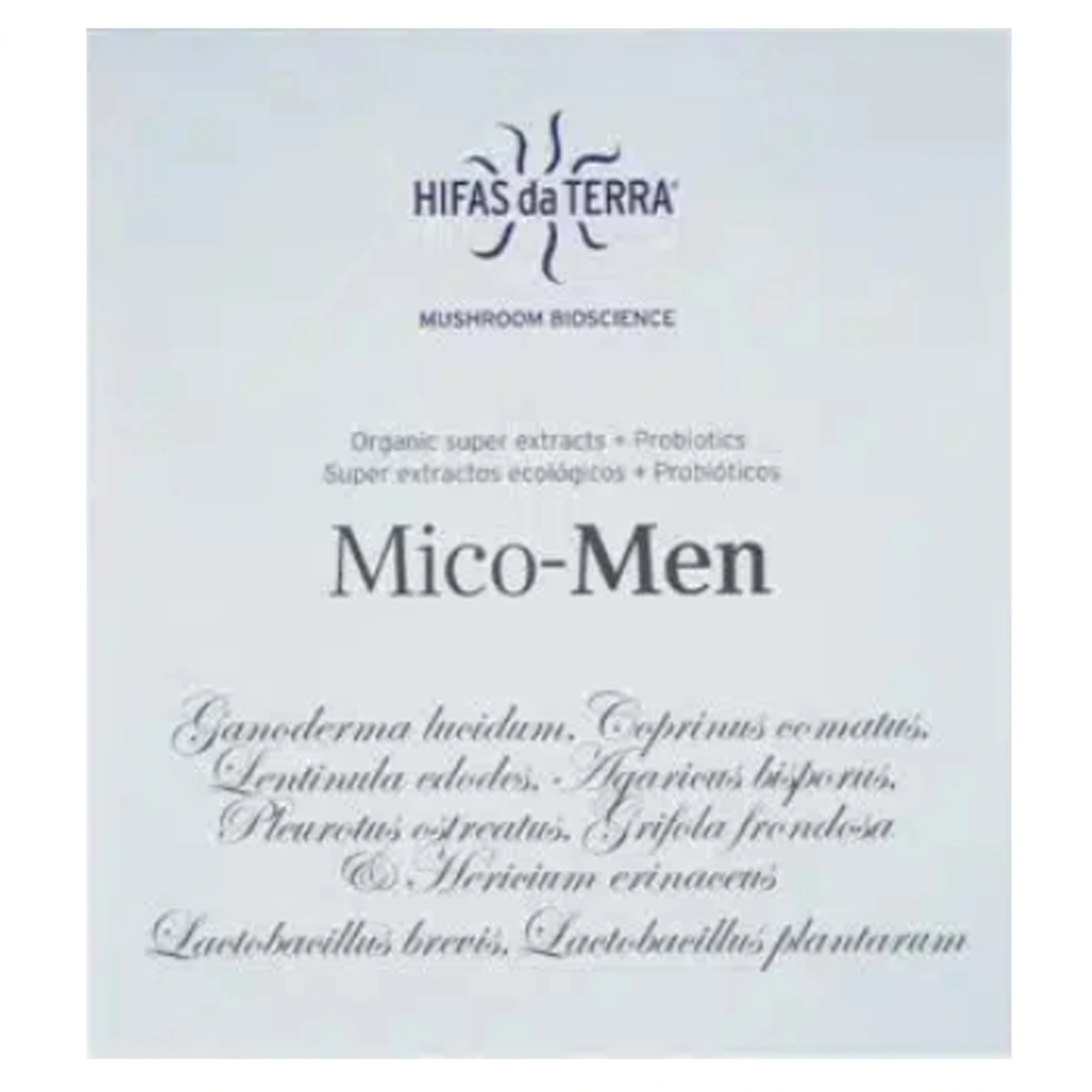 Mico Men 2.0 Hifas da Terra est un complément alimentaire issu de la mycothérapie. C'est un adjuvant symbiotique naturel qui contient des champignons médicinaux, des prébiotiques et des probiotiques.