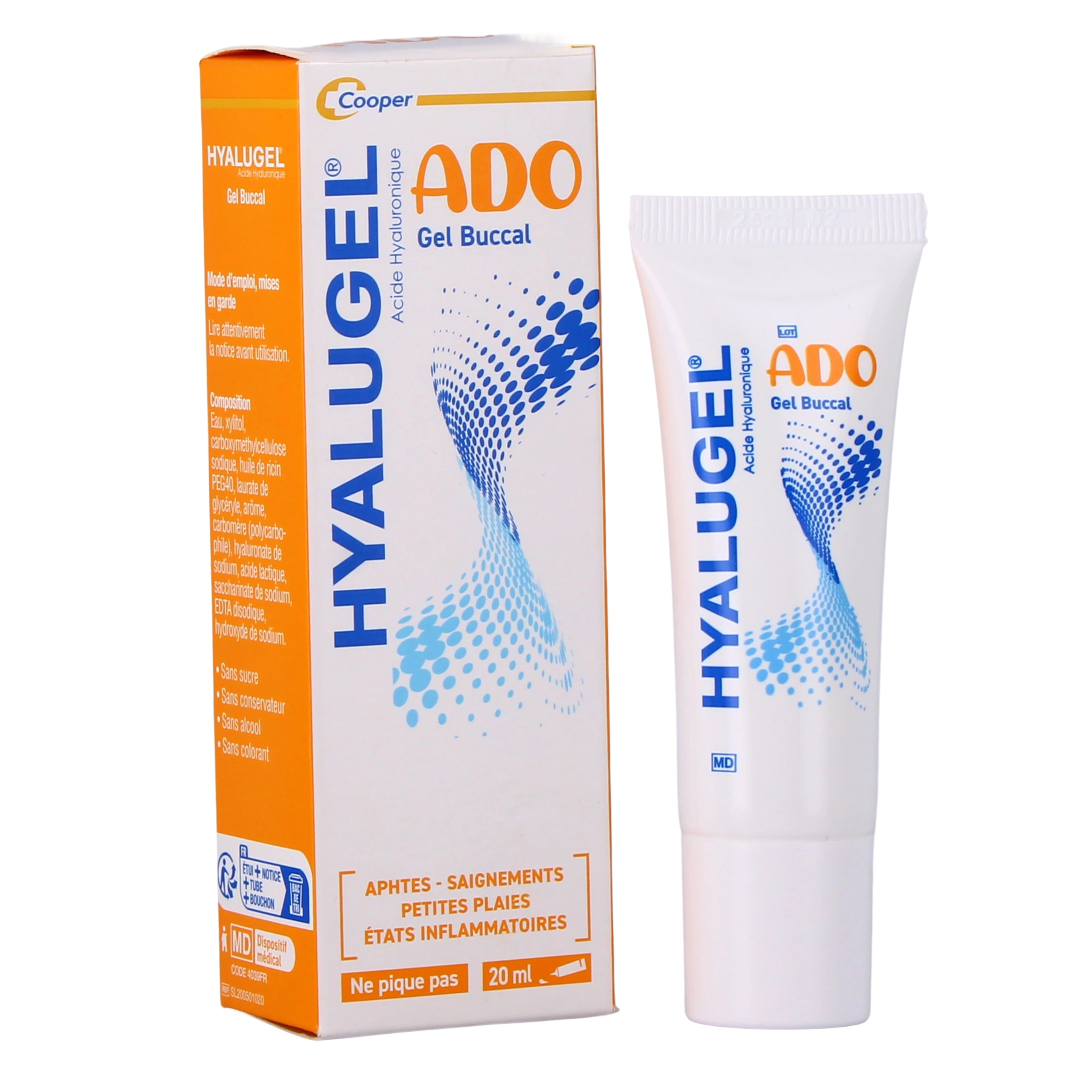 Hyalugel Ado est un dispositif médical sous forme de Gel buccal qui est indiqué dans les états inflammatoires, les états traumatiques ainsi que les états où la muqueuse gingivale a besoin d'une augmentation en acide hyaluronique.