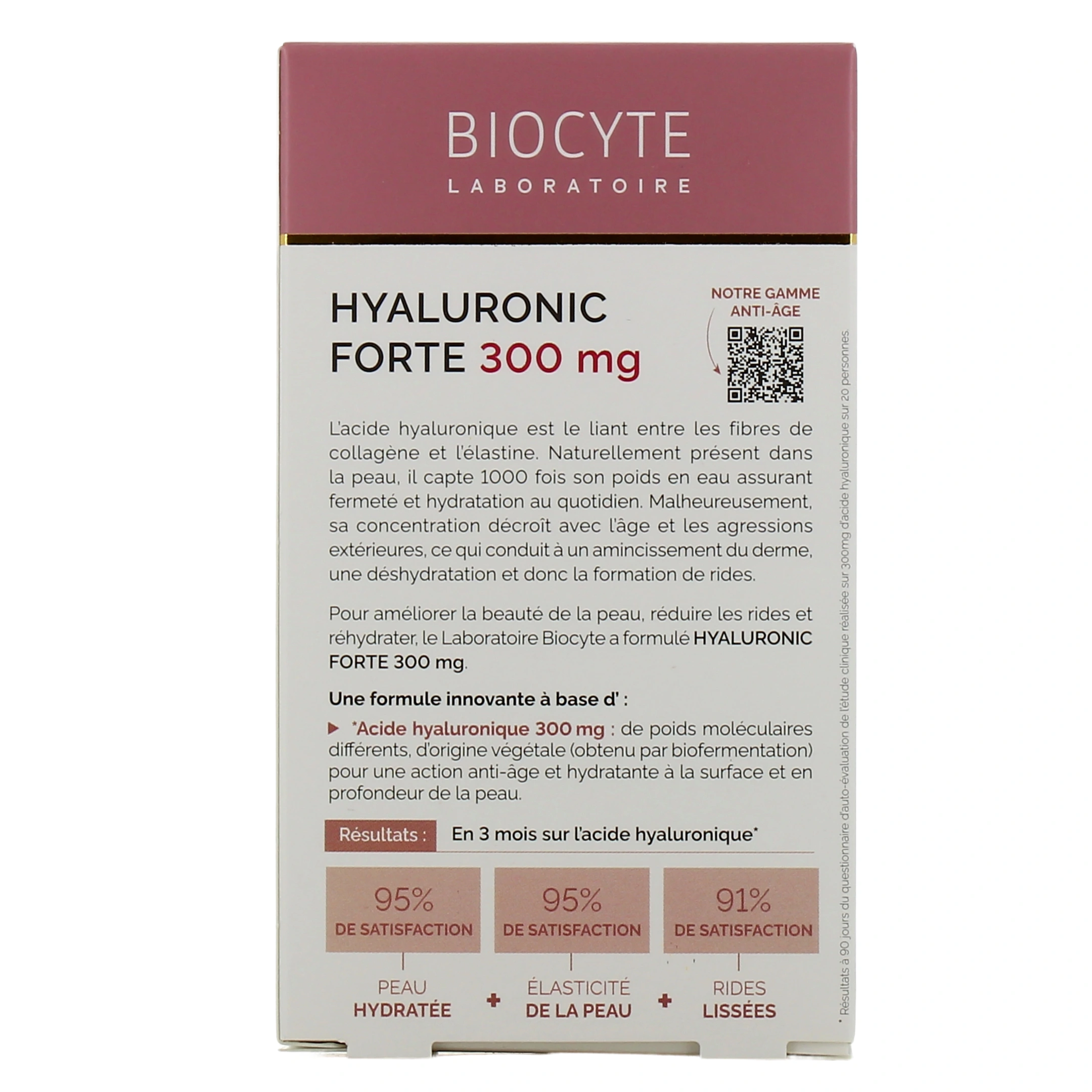 Ce complément alimentaire mis au point par Biocyte est destiné aux personnes ayant des rides marquées et profondes dont la peau est en perte d'élasticité. Au-delà des signes de l'âge, cela peut être la conséquence d'une exposition répétée ou prolongée au soleil, au froid, à la chaleur, à la pollution ou encore au tabac qui a pour effet une réduction de la quantité d'acide hyaluronique dans la peau, entraînant un amincissement du derme et la formation de rides.