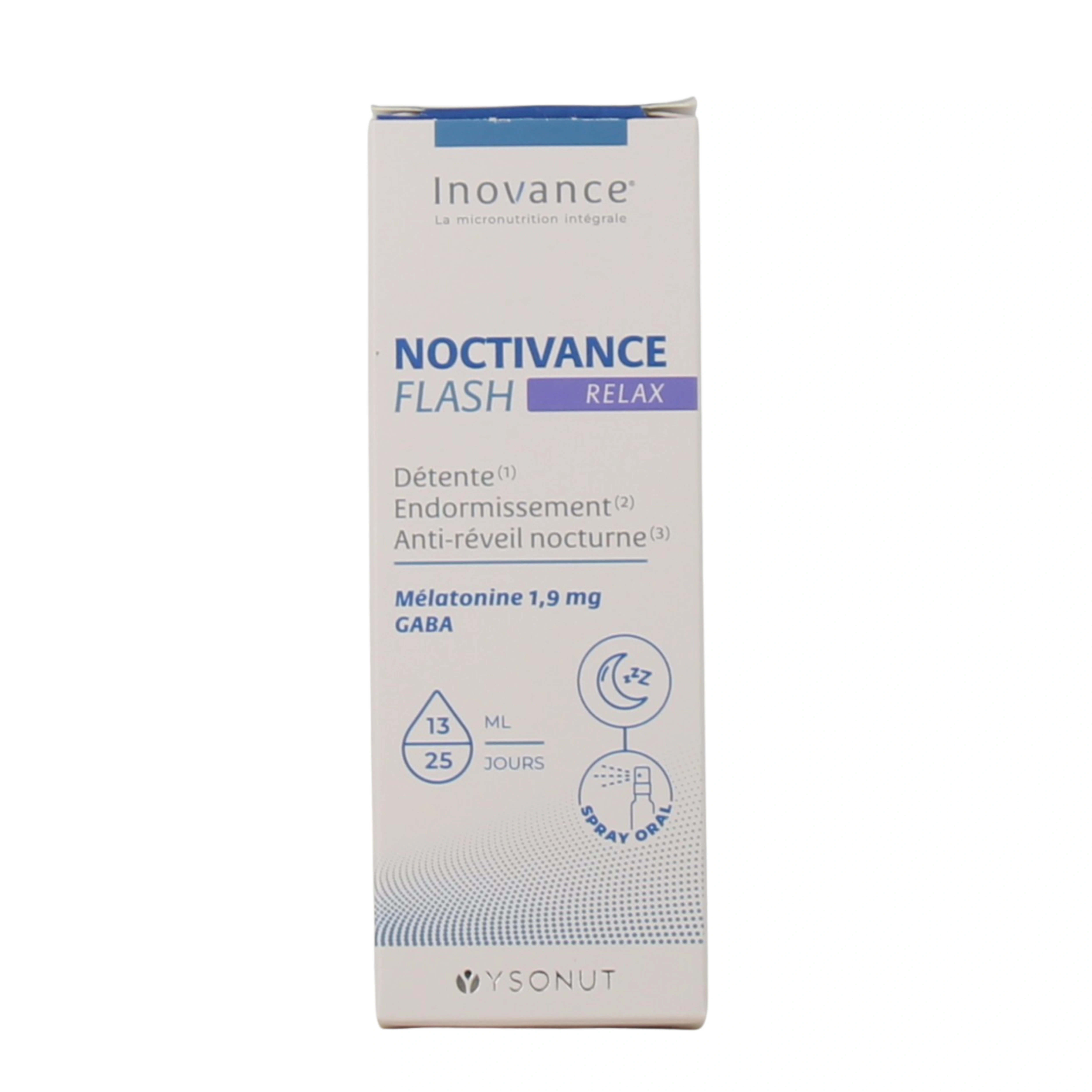 Inovance Noctivance Flash est un complément alimentaire du laboratoire Ysonut pour les troubles du sommeil passagers. Il se présente sous la forme de deux sprays aux formules différentes : l'un sans mélatonine et l'autre favorisant la relaxation.