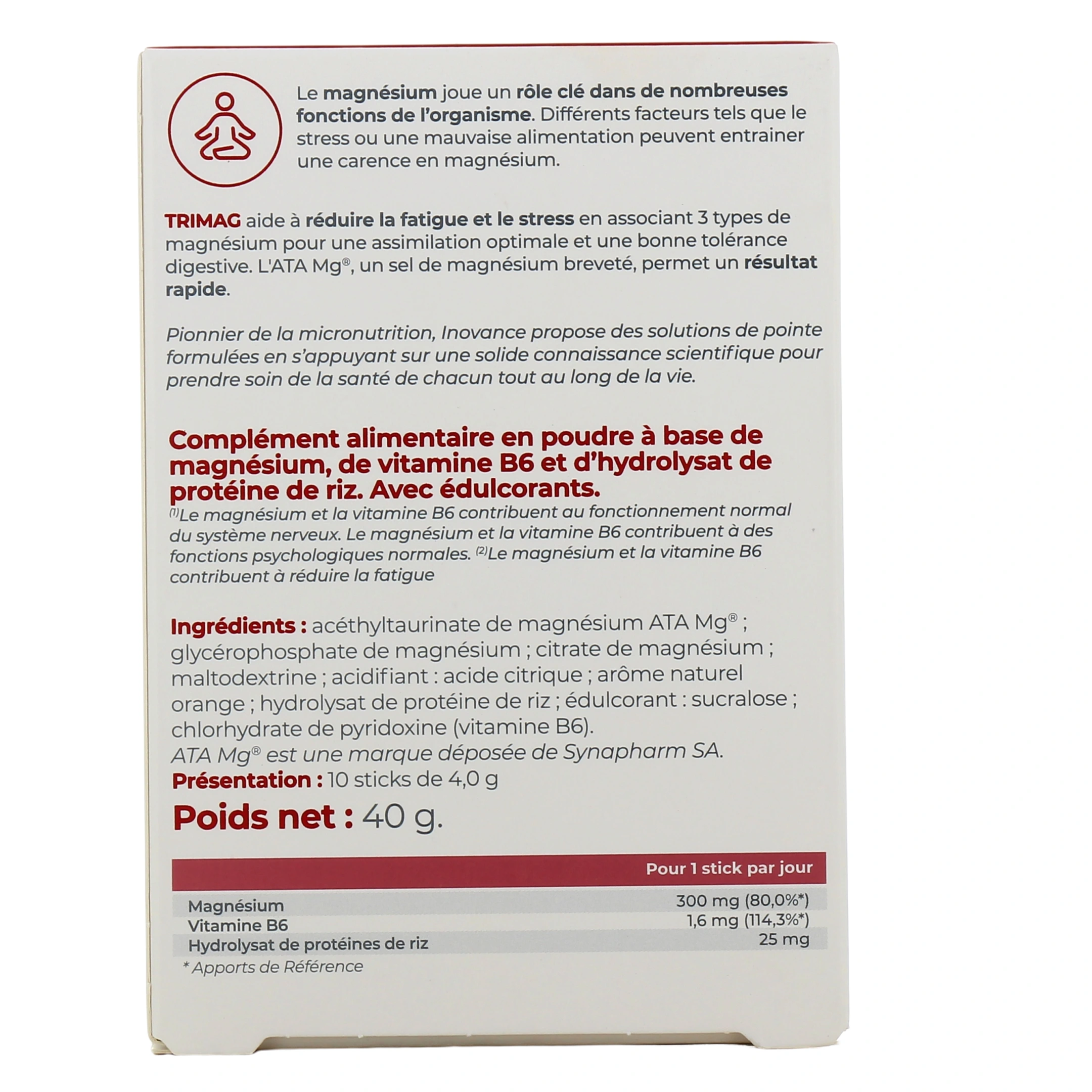 Présentation disponible pour Inovance Trimag sur notre pharmacie en ligne : Boîte de 10 sticks, soit 10 jours de cure
