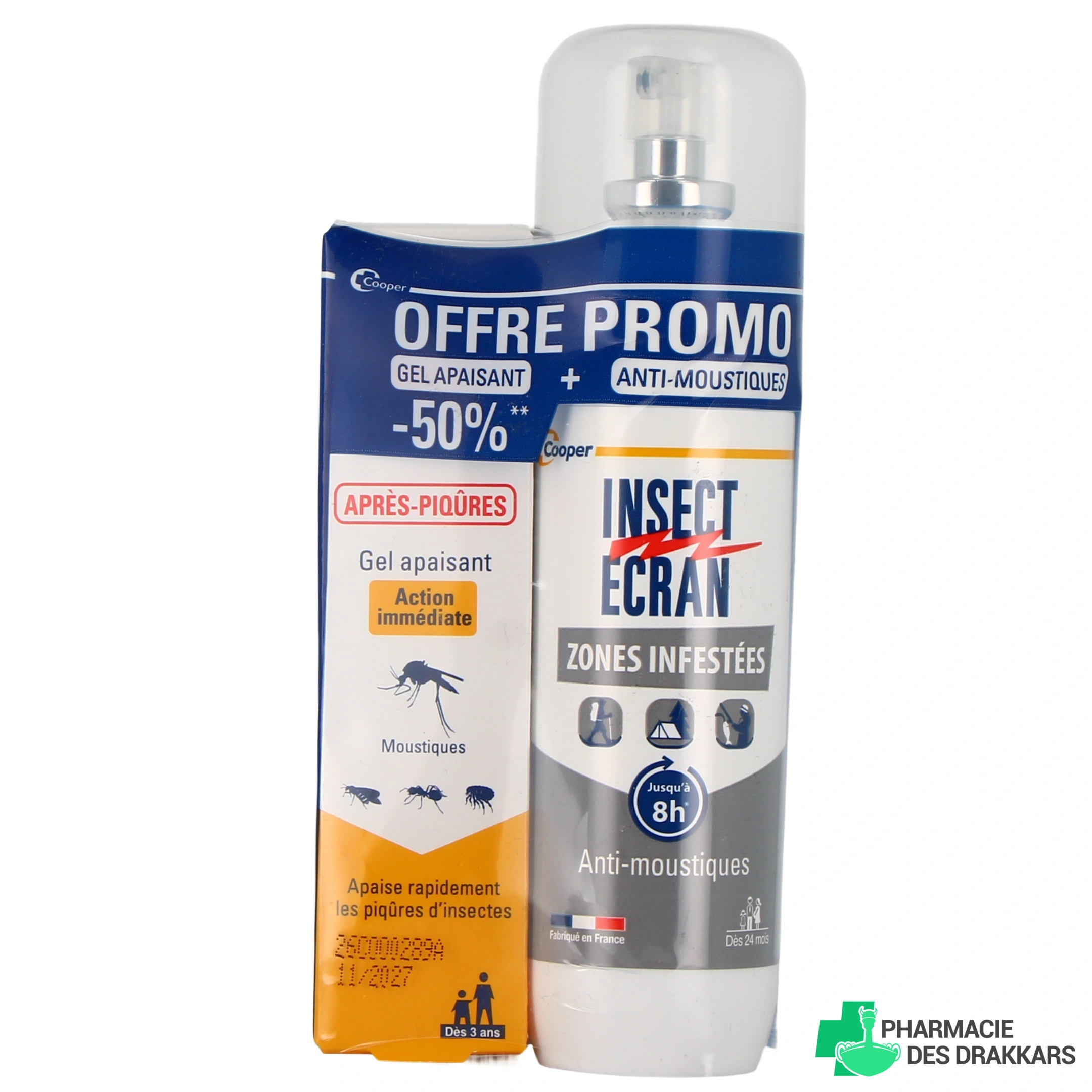 Pour prévenir les piqûres de moustiques dans les zones présentant des fortes concentrations en moustiques, notre équipe vous recommande ce spray répulsif Insect Ecran Anti-moustiques Zones infestées.