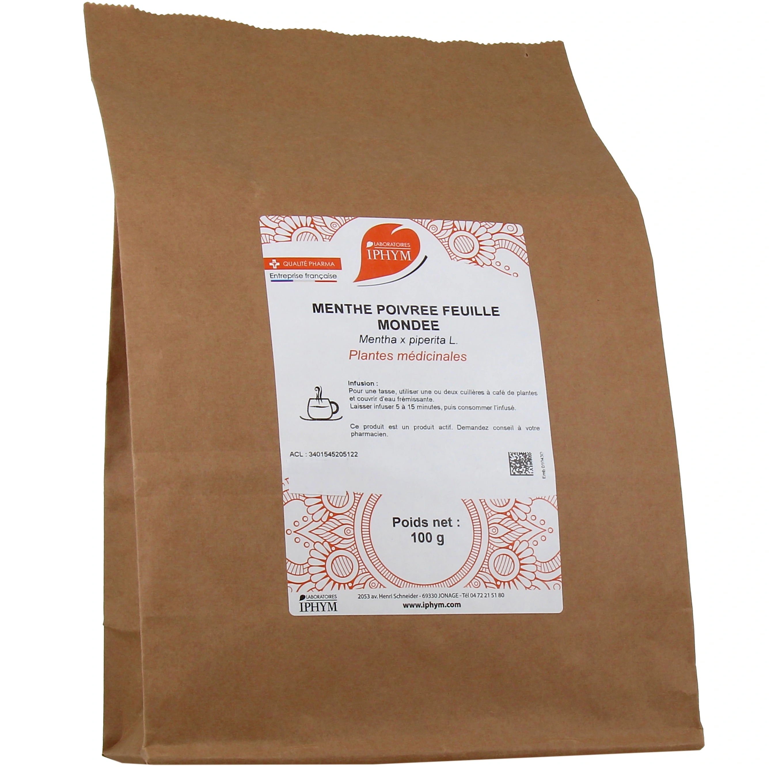 Vous pourrez retrouver la préparation de feuilles mondées de menthe poivrée des laboratoires Iphym dans les présentations suivantes chez Pharmacie des Drakkars : sachet de 100 g de préparation pour infusion en vrac.