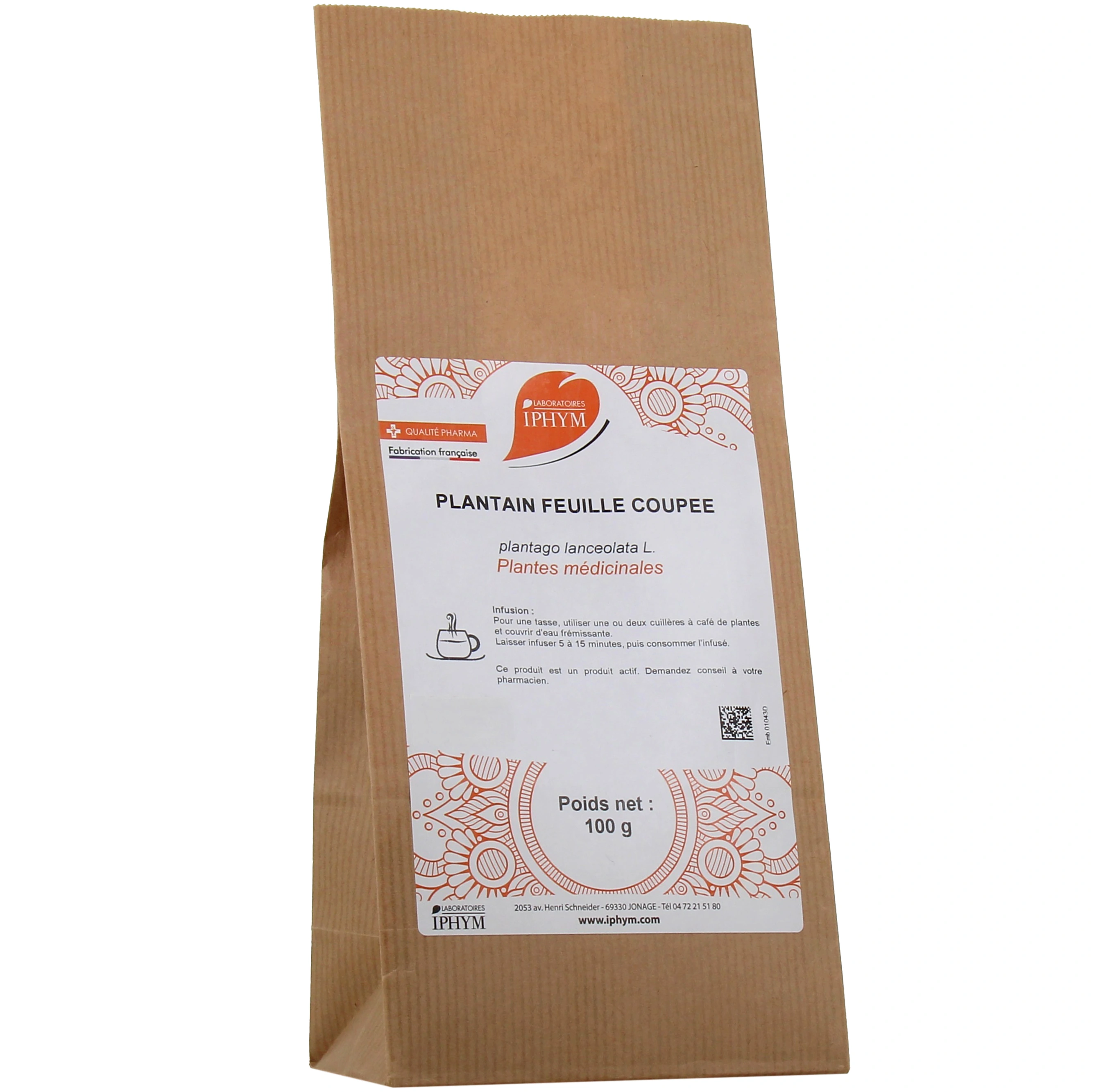 La préparation Plantain Feuille Coupée des laboratoires Iphym est une infusion à base de plantes médicinales, le plantain (plantago lanceolata L.).