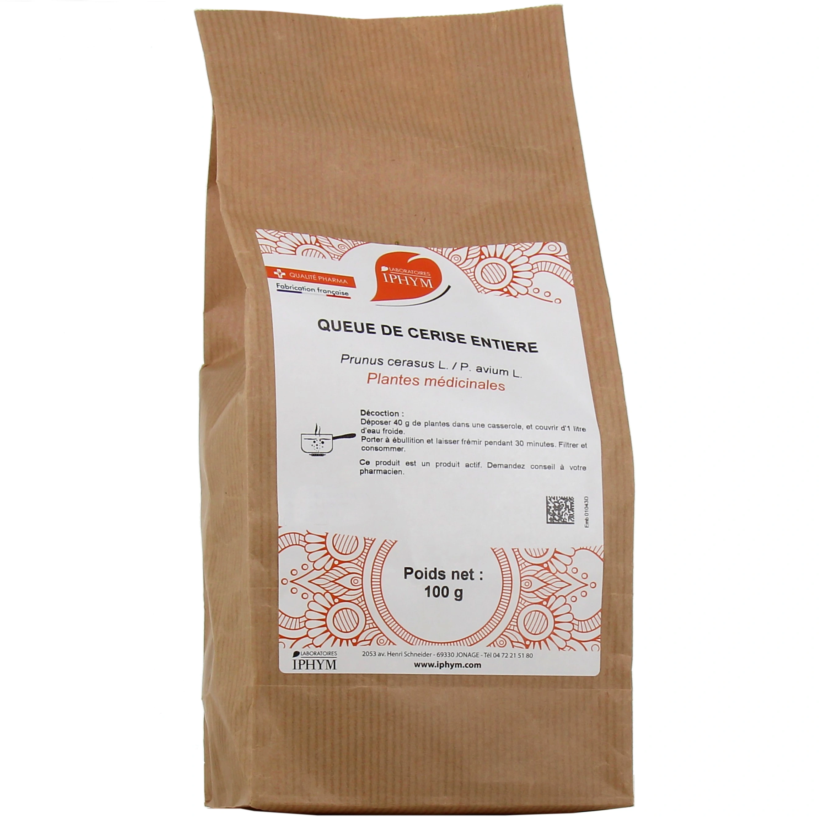 La préparation pour infusion Queue de Cerise Entière des laboratoires Iphym est à retrouver dans les conditionnements suivants sur notre pharmacie en ligne : sachet de 100 g de préparation en vrac.