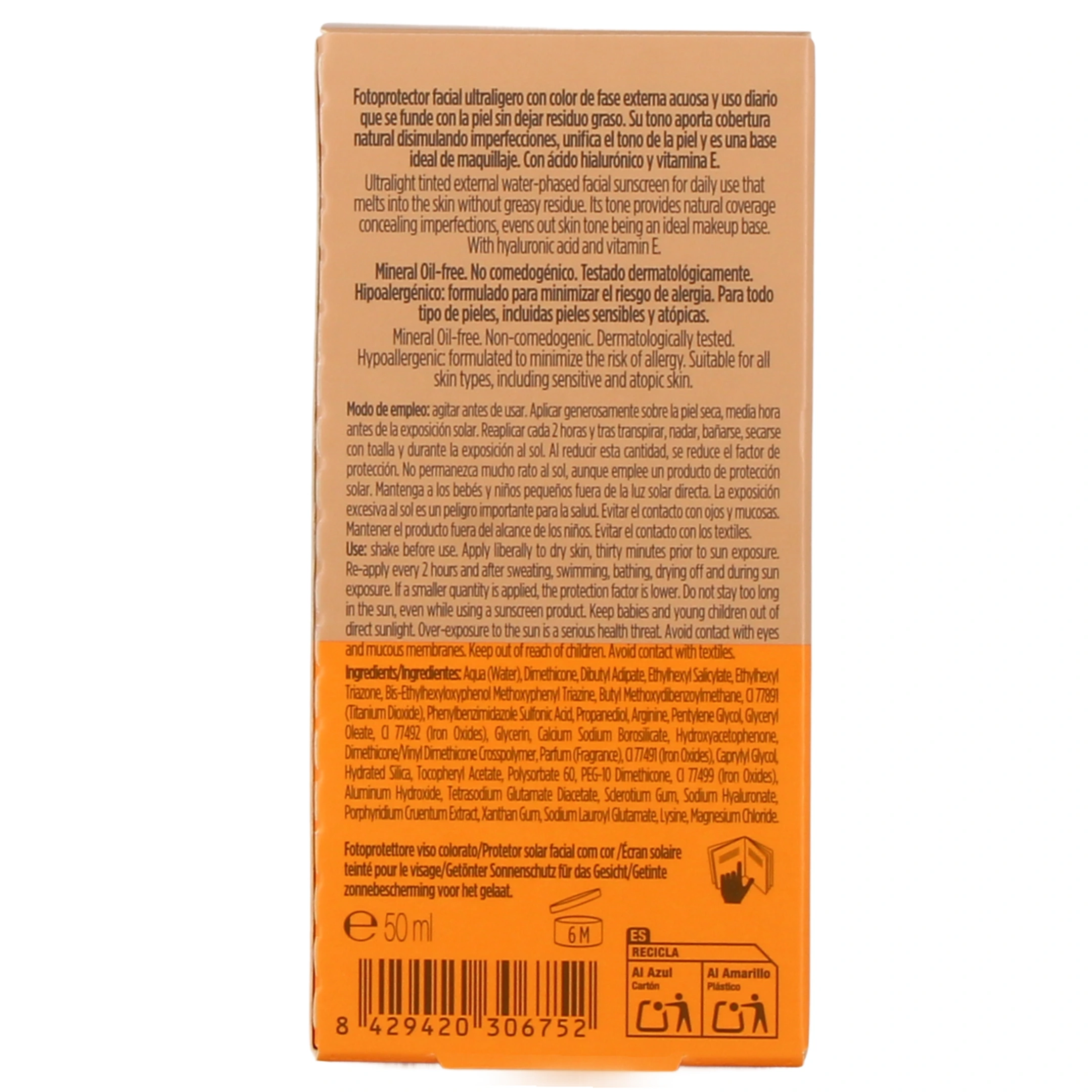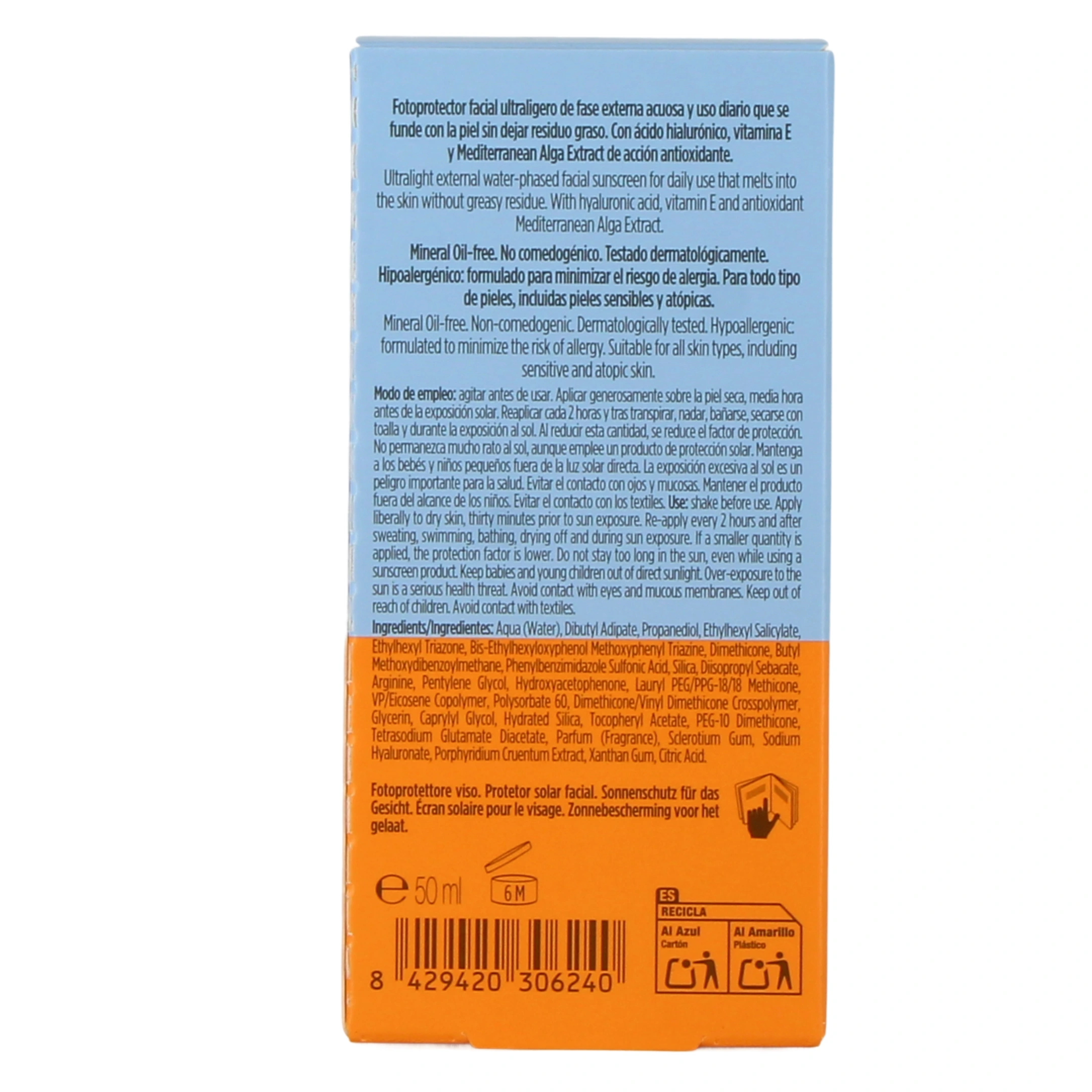 Fotoprotector FusionWater SPF 50 d'Isdin est une crème solaire visage ultra-légère qui offre une protection contre les UVB, UVA, la lumière bleue, les IR-A et la pollution. Sa texture agréable est absorbée immédiatement, sans effet gras ni traces blanches, et convient même aux peaux sensibles ou atopiques. Enrichie en actifs hydratants et antioxydants, elle protège la peau des dommages oxydatifs tout en assurant un confort optimal au quotidien. Cette crème solaire SPF 50 se décline en 5 références : Magic, Magic Glow, Magic Light, Magic Medium et Magic Bronze.