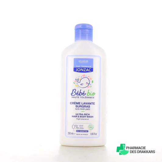 Développée par le laboratoire Léa Nature, la crème lavante surgras hypoallergénique bébé Bio Jonzac est spécialement conçue pour la toilette de bébé. Elle contient une composition bio, naturelle et d'origine Française et possède une base lavante douce pour nettoyer la peau et les cheveux de bébé encore fragiles.