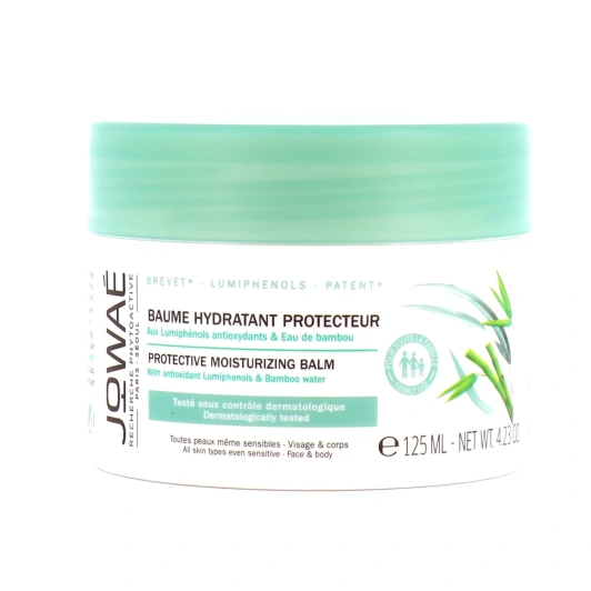 Inspiré de la recherche phytoactive franco-coréenne, le baume hydratant protecteur Jowaé à haute tolérance s'utilise aussi bien chez l'adulte que chez l'enfant. Ce soin se compose d'eau de bambou, de beurre de karité et de lumiphénols antioxydants. L'eau de bambou a des propriétés revitalisantes et hydratantes. Le beurre de karité renforce l'hydratation de l'épiderme. Les lumiphénols antioxydants ont des vertus réparatrices et protectrices qui permettent de lutter contre le vieillissement cutané. Formulé à 96% d'ingrédients d'origine naturelle, ce baume hydrate, réconforte et aide la peau à se protéger au quotidien.
