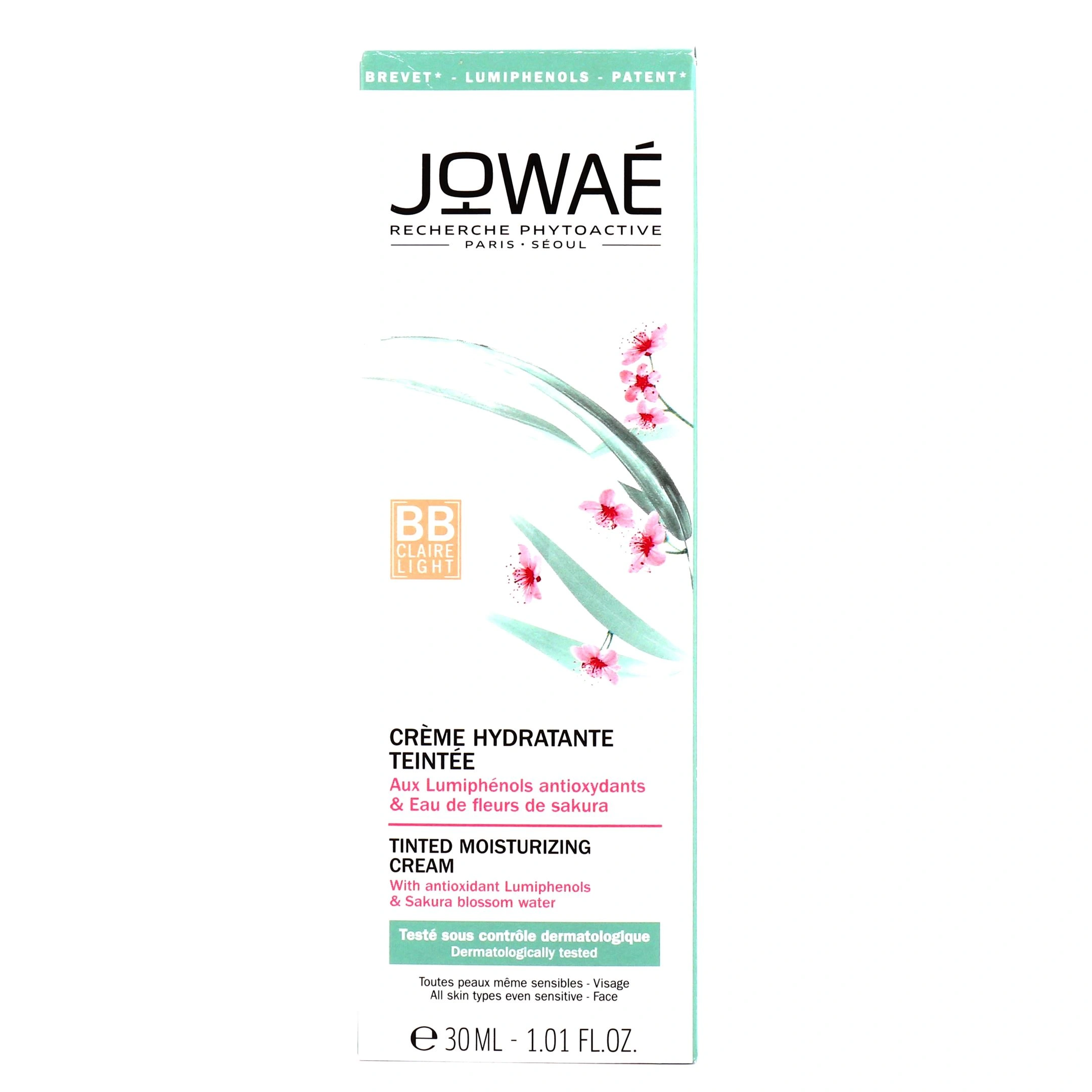 La crème hydratante teintée Jowaé associe les lumiphénols à l'eau de fleur de sakura, véritable eau de beauté aux propriétés désaltérantes. En effet, les lumiphénols possèdent d'excellentes propriétés hydratantes et aident à lutter contre le vieillissement cutané grâce à leurs propriétés antioxydantes. L'eau de fleur de Sakura, quant à elle, contribue à renforcer le film hydrolipidique de la peau de par sa forte teneur en eau. Elle contient également de la glycérine végétale et des pigments minéraux pour hydrater durablement et efficacement la peau.