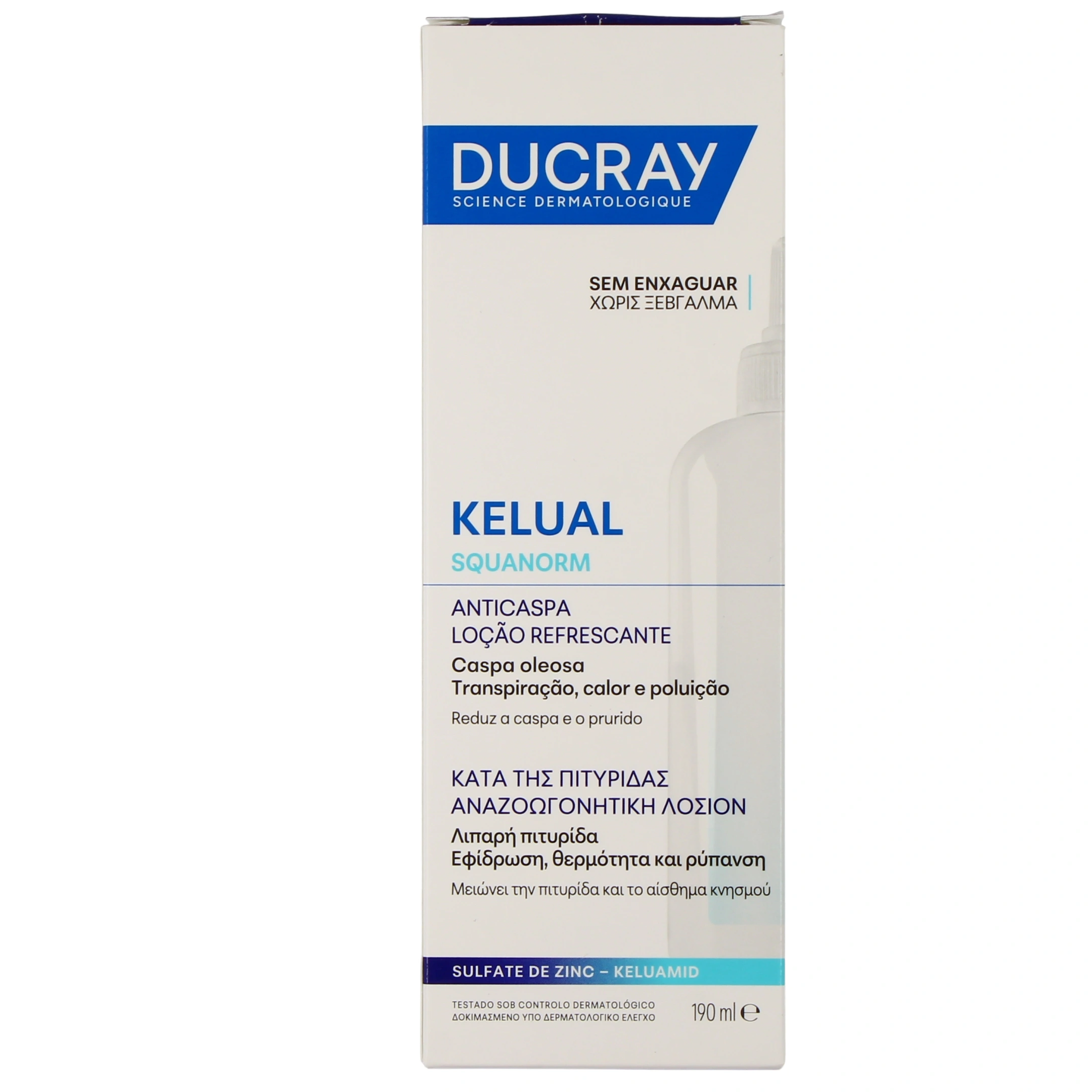 La lotion antipelliculaire Kelual Squanorm Ducray est un soin sans rinçage qui s'utilise en complément des shampooings traitants antipelliculaires. Elle calme durablement les démangeaisons et réduit les pellicules dès la première utilisation. Elle se compose de Kéluamid, un actif kératoréducteur qui contribue à désagréger et éliminer les pellicules, qu'elles soient grasses ou sèches. Les démangeaisons sont apaisées et les rougeurs sont atténuées grâce à la présence de sulfate de zinc. Appliquée sur le cuir chevelu, la lotion antipelliculaire Kelual Squanorm Ducray sèche rapidement et ne laisse pas de fini gras sur les cheveux. Les démangeaisons sont calmées, les pellicules sont réduites et le cuir chevelu est assaini.