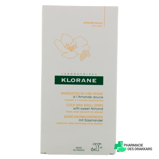 Les bandelettes de cire froide à l'amande douce Klorane sont proposées dans les conditionnements suivants chez Pharmacie des Drakkars : boîte de 6 doubles bandelettes.