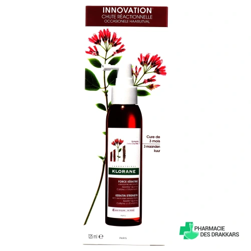 Recommandée pour combattre les chutes de cheveux réactionnelles, sa formule contient de la kératine quinine, de la caféine et des vitamines B. En effet, le concentré Force Kératine a été développé par les Laboratoires Klorane pour ralentir la chute des cheveux tout en stimulant leur croissance.