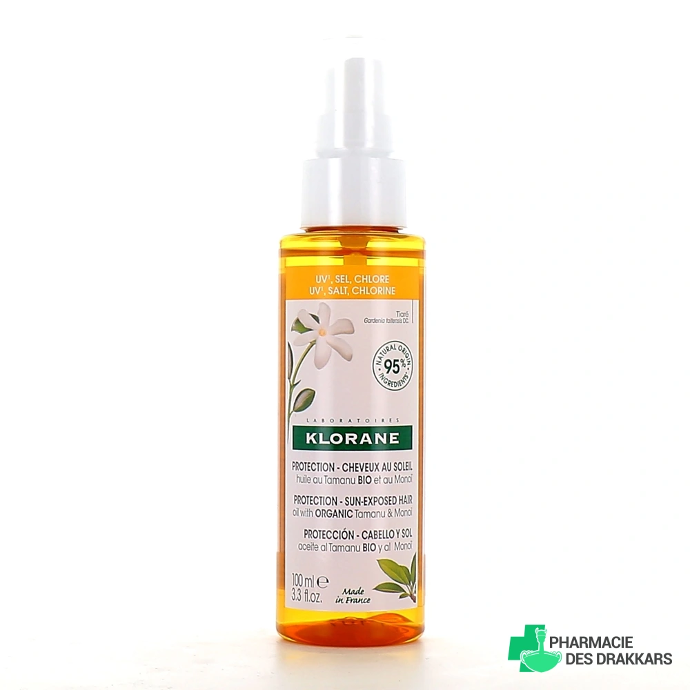 Pendant la période estivale, nos cheveux sont confrontés à de nombreuses agressions telles que la chaleur, le sel, le sable ou encore le chlore. Toutes ces agressions fragilisent nos cheveux et peuvent les rendre secs et cassants. Le laboratoire Klorane a donc développé l'huile protectrice au Tamanu Bio et au Monoï afin de prendre soin de vos cheveux avant, pendant et après l'exposition au soleil.
