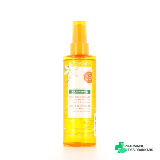L'huile sèche solaire corps et cheveux Klorane Polysianes est une haute protection solaire SPF 30 pour le corps et les cheveux. Elle contribue à protéger la peau des rayons du soleil tout en sublimant la chevelure à chaque exposition. Elle s'utilise sur tous les types de peaux et sur tous les types de cheveux.