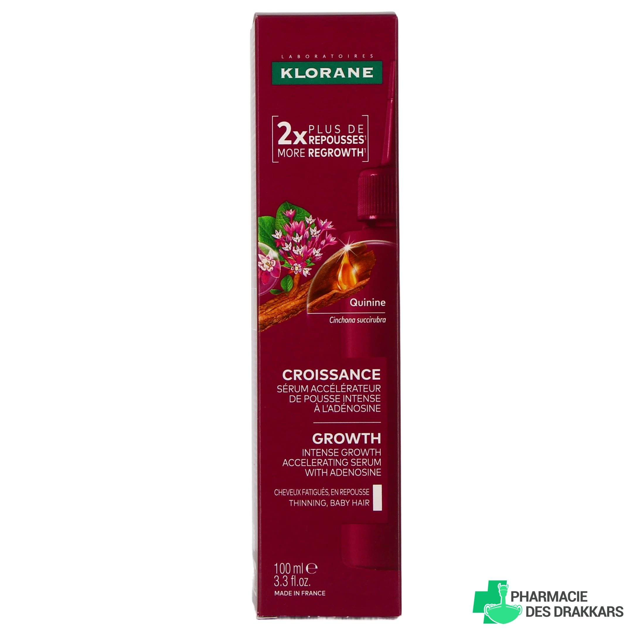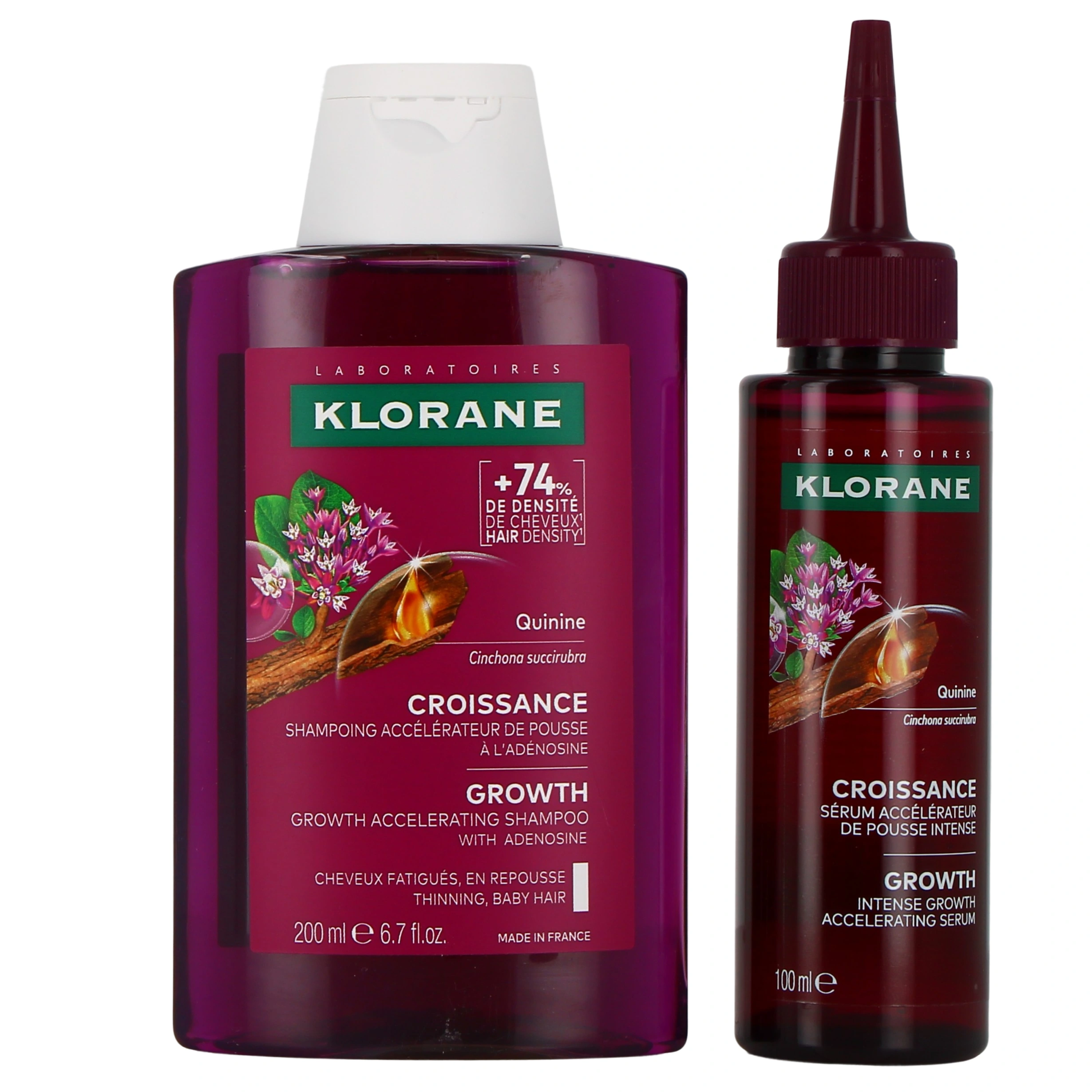 - Flacon de 200 ml en duo avec le sérum croissance de la même gamme, en format 100 ml.