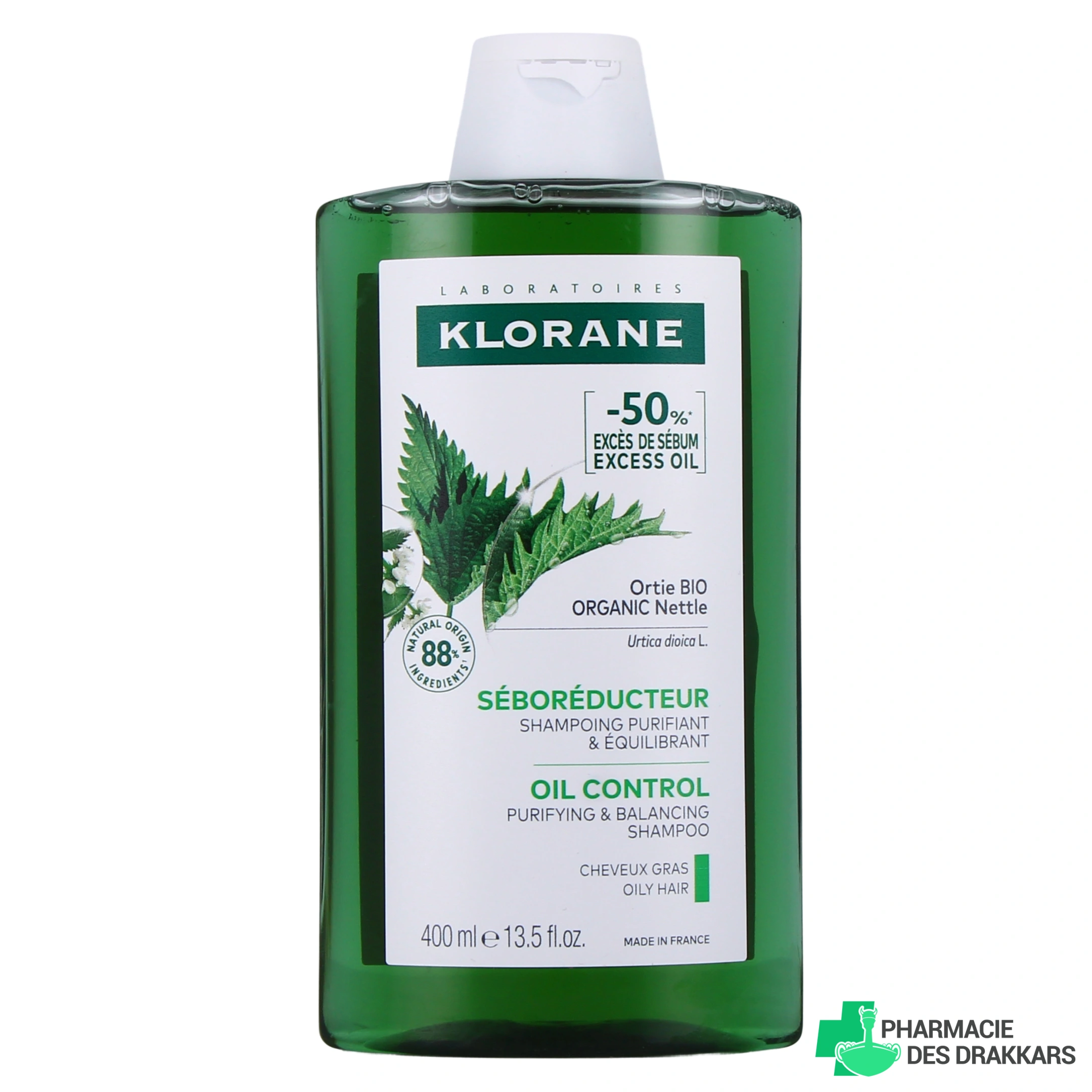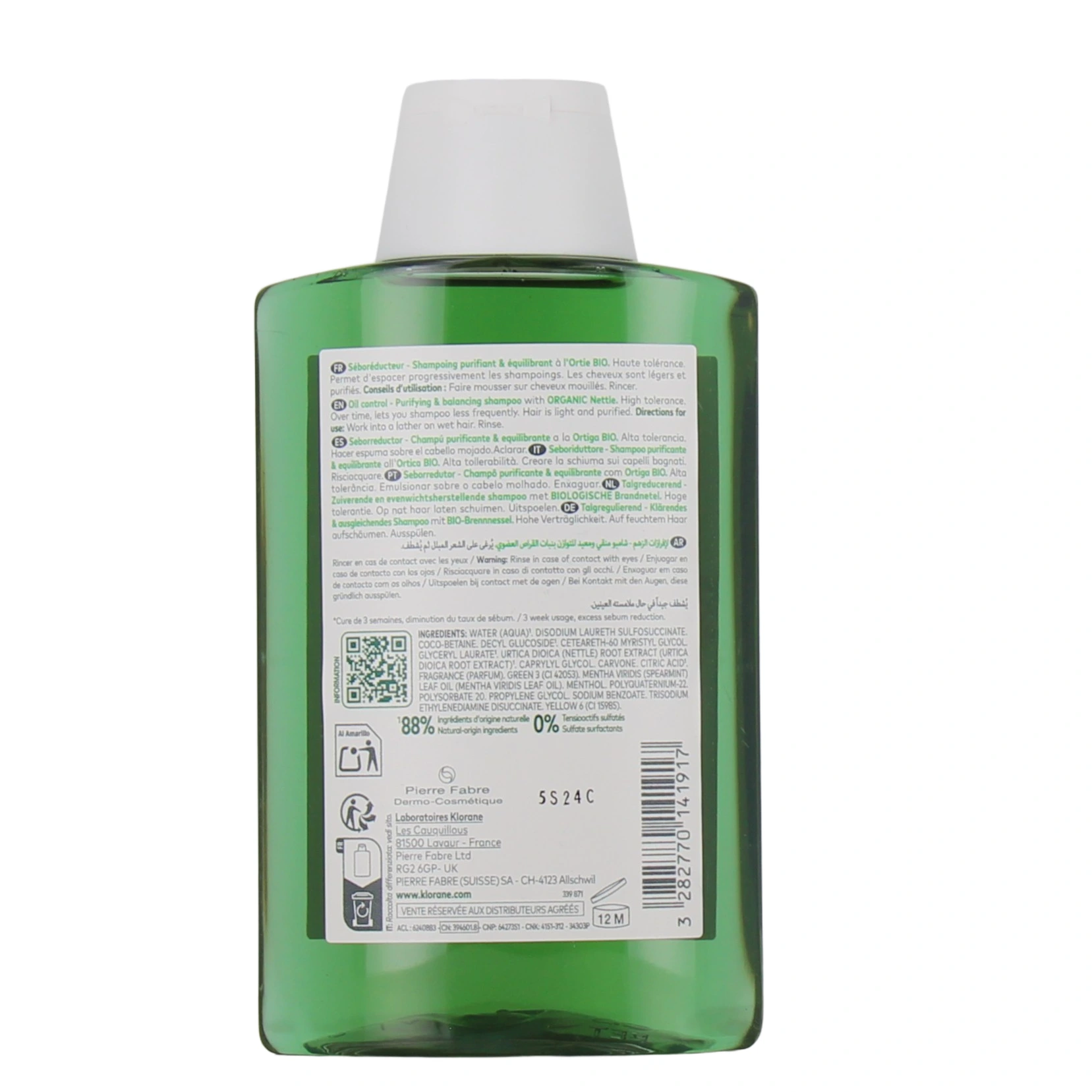 Présentation proposée par votre pharmacie en ligne pour le shampooing séboréducteur à l'ortie Klorane : Flacon de 200 ou 400ml.