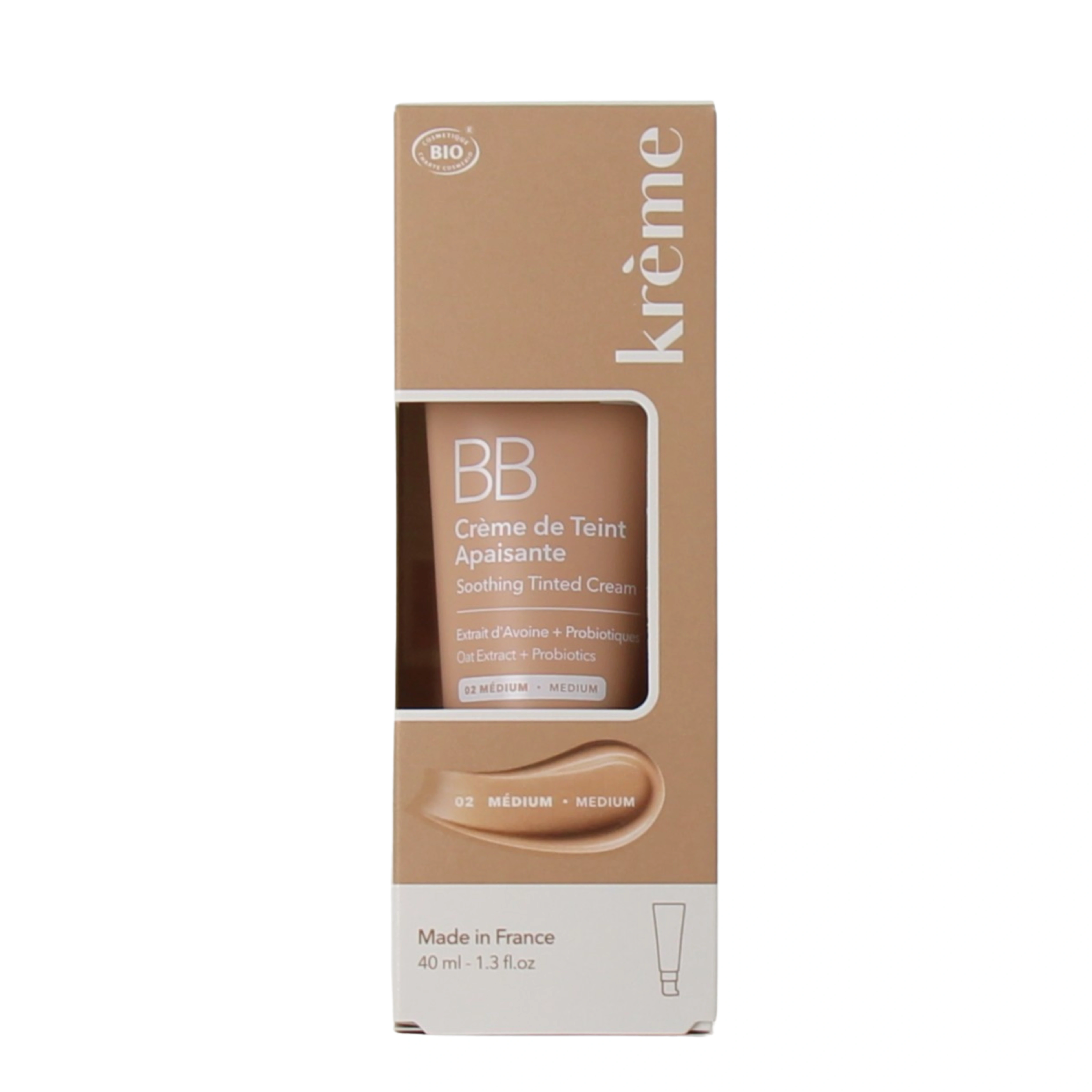 Véritable concentré de bienfaits, la bb crème Krème dispose d'une formule à 90% de soin. On retrouve notamment dans celle-ci de l'avoine qui apaise avec efficacité la peau ainsi que des probiotiques au pouvoir apaisant, qui renforcent la barrière cutanée.