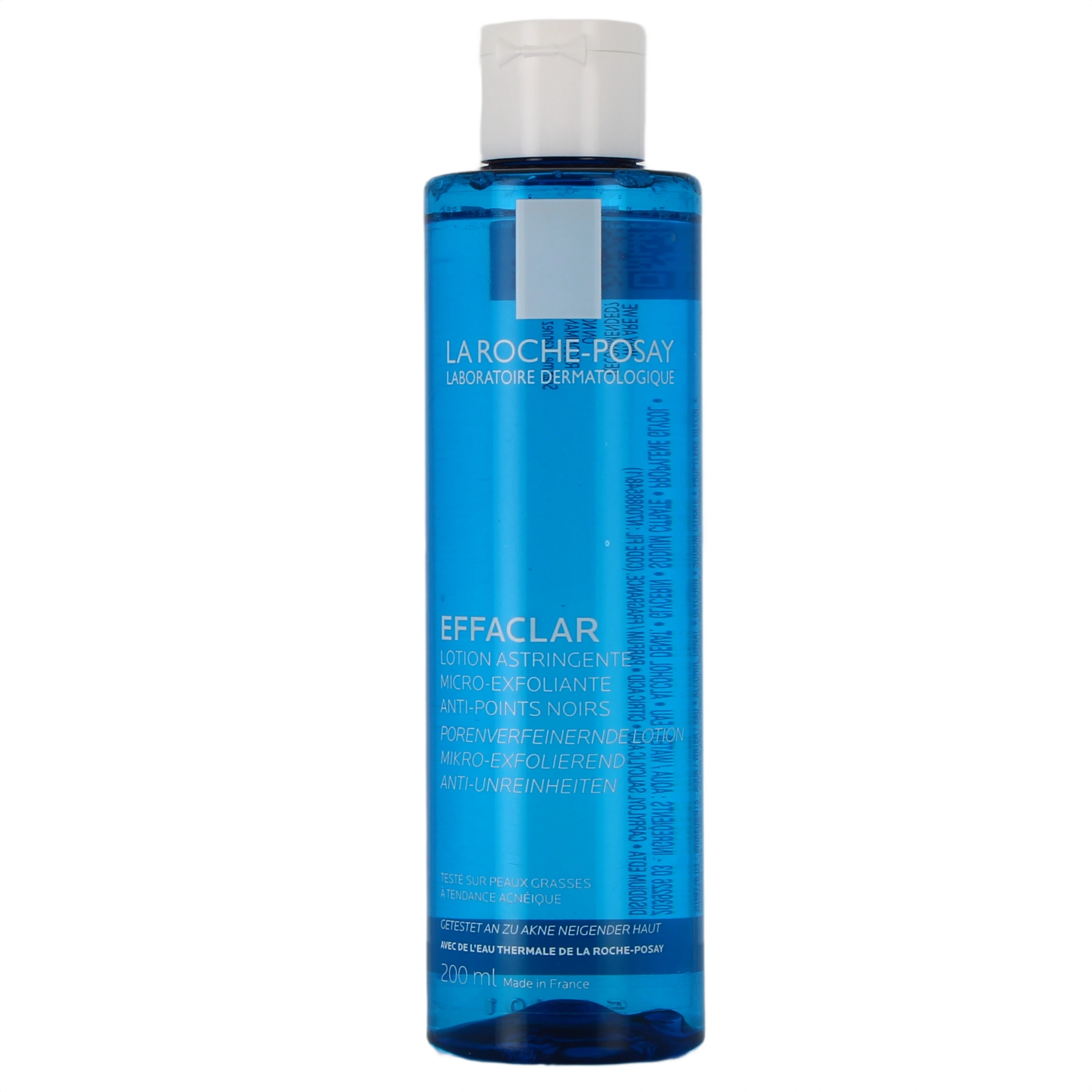 - Routine complète peaux grasses à imperfections Effaclar : tube de 40 ml avec le gel micropeeling Efflaclar en flacon-pompe de 400 ml et la lotion astringente Effaclar en flacon de 200 ml.