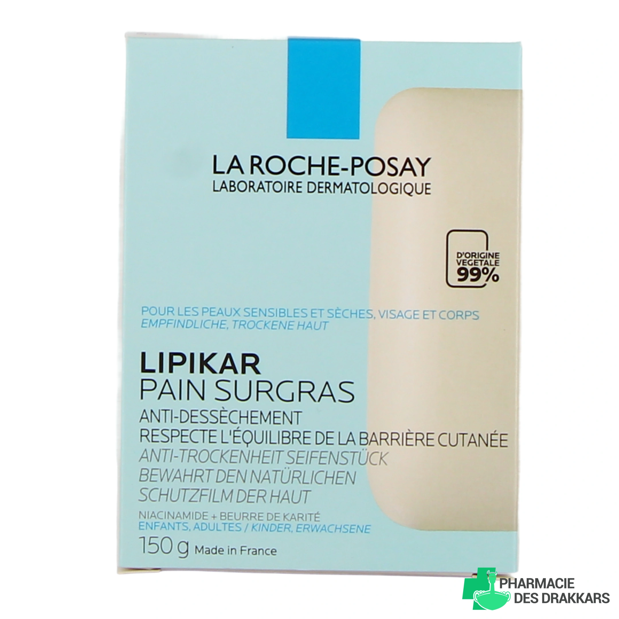 Le pain surgras Lipikar La Roche Posay est adapté pour la toilette de toute la famille. Il est destiné particulièrement aux peaux sensibles, sèches et inconfortables. Ce pain physiologique anti-dessèchement va nettoyer la peau sans l'agresser tout en respectant le film protecteur naturel.