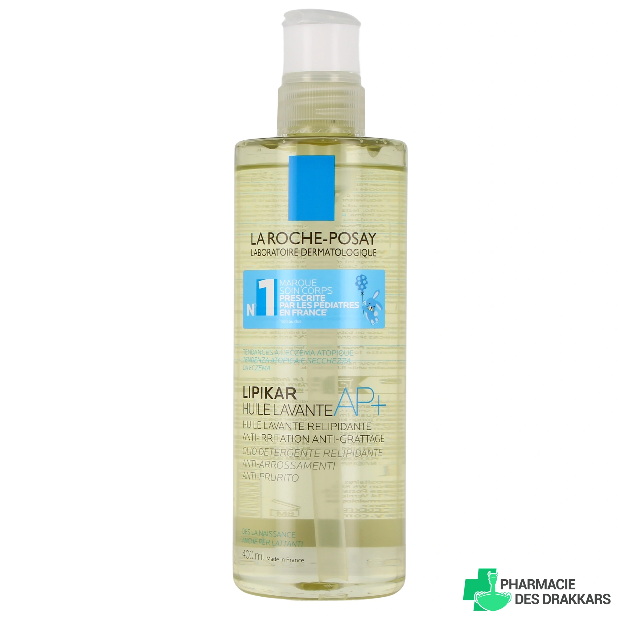 - Routine Anti-Rugosités Lipikar : flacon-pompe de 400 ml en duo avec l'huile lavante relipidante Lipikar en flacon-pompe de 400 ml également.