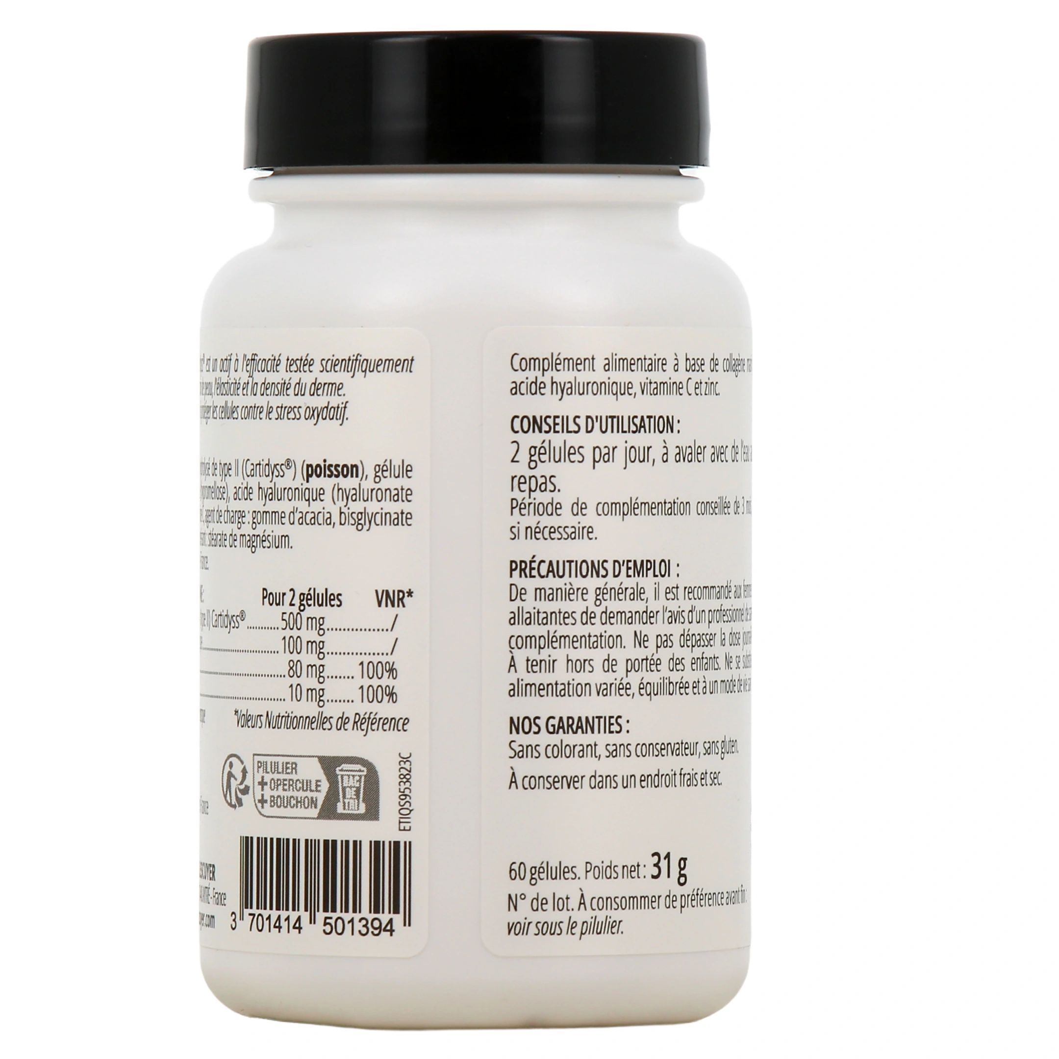 - Cartidyss, un collagène marin de type II, 100 % naturel, sous forme hydrolysée et de bas poids moléculaire. Il contribue à repulper la peau et à améliorer le teint. De par sa forme, ce collagène marin est bien assimilé par l'organisme, pour des bienfaits optimisés.