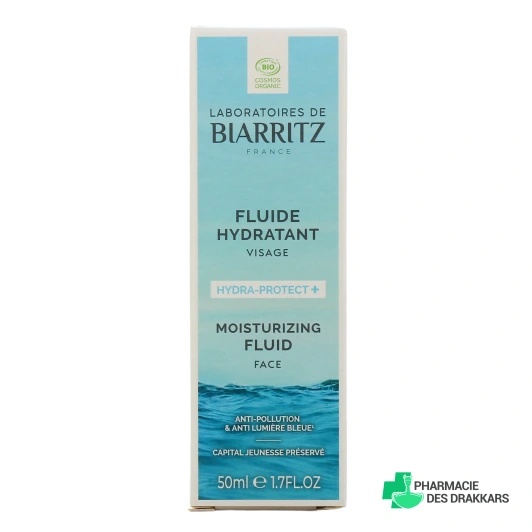 Vous pourrez retrouver le fluide hydratant visage Bio Hydra-Protect + des Laboratoires de Biarritz dans les présentations suivantes chez Pharmacie des Drakkars : flacon de 50 ml.