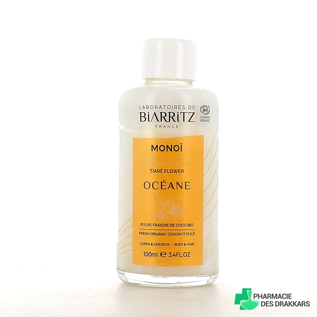L'huile Monoï Océane des Laboratoires de Biarritz est un soin de beauté incontournable : il nourrit la peau du corps et des cheveux tout en déposant un délicieux parfum de noix de coco ou de fleur de Tiaré, au choix. Cet élixir de beauté est idéal en soin après-soleil mais s'utilise aussi tout au long de l'année.