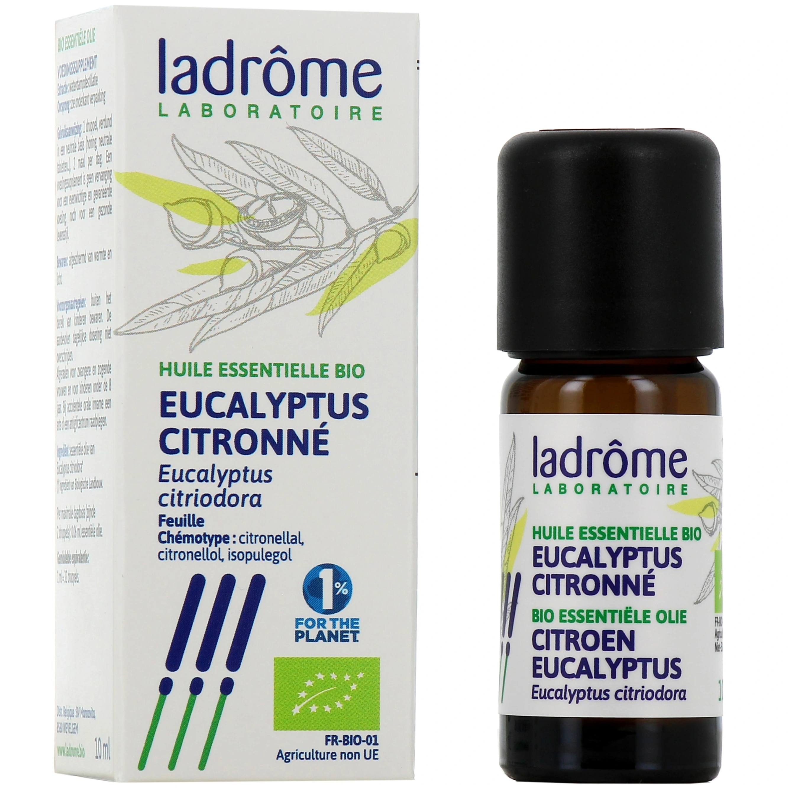 L'huile essentielle d'Eucalyptus Citronné Bio du laboratoire Ladrôme est une huile essentielle biologique obtenue par distillation à la vapeur d'eau de feuilles d'eucalyptus citronné (Eucalyptus citriodora) issu de l’Agriculture Biologique.