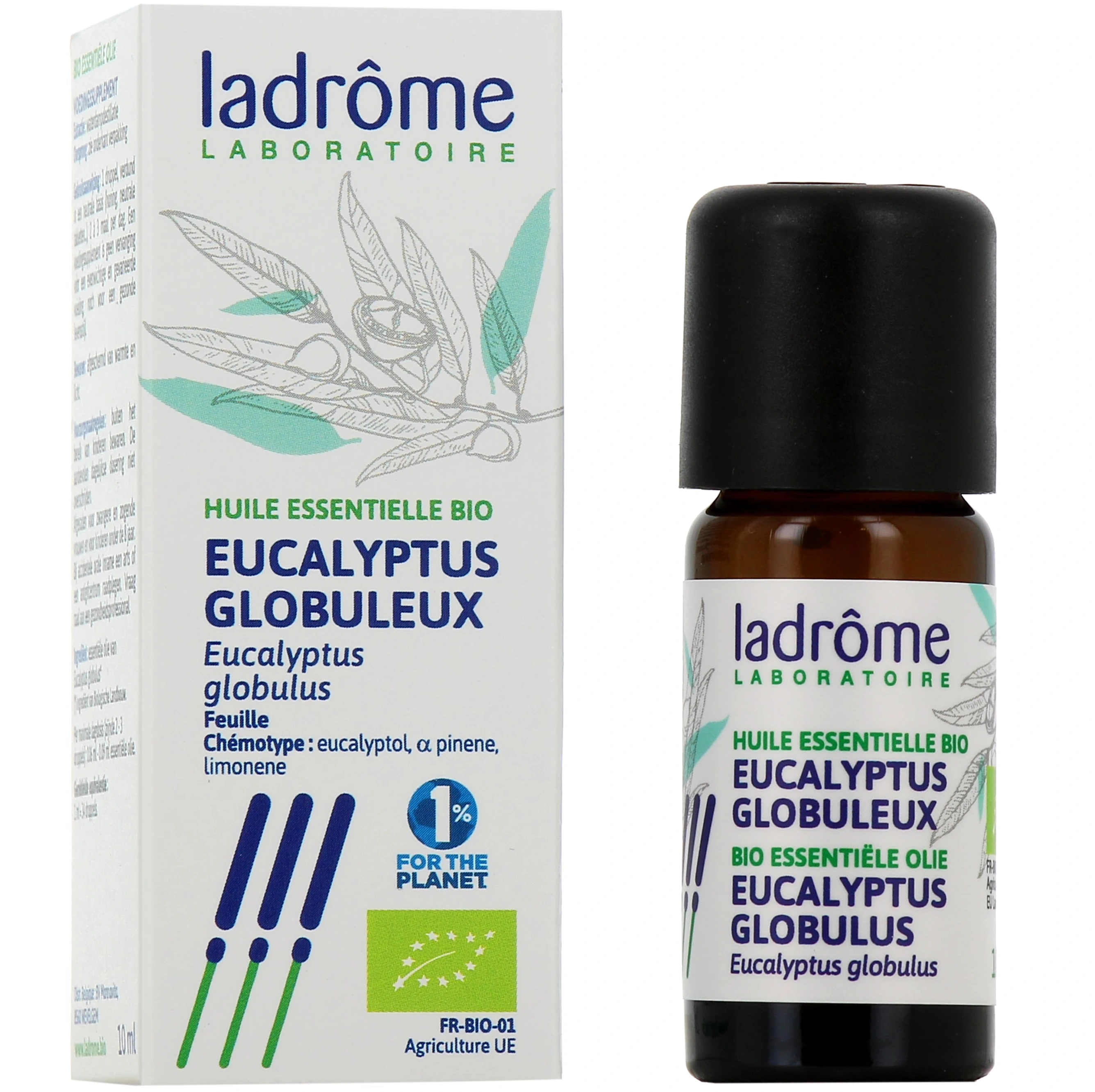 L’huile essentielle d'Eucalyptus Globuleux Bio du laboratoire Ladrôme est une huile essentielle pure, intégrale et non diluée obtenue par distillation à la vapeur d’eau de feuilles d’Eucalyptus Globuleux (Eucalyptus globulus).