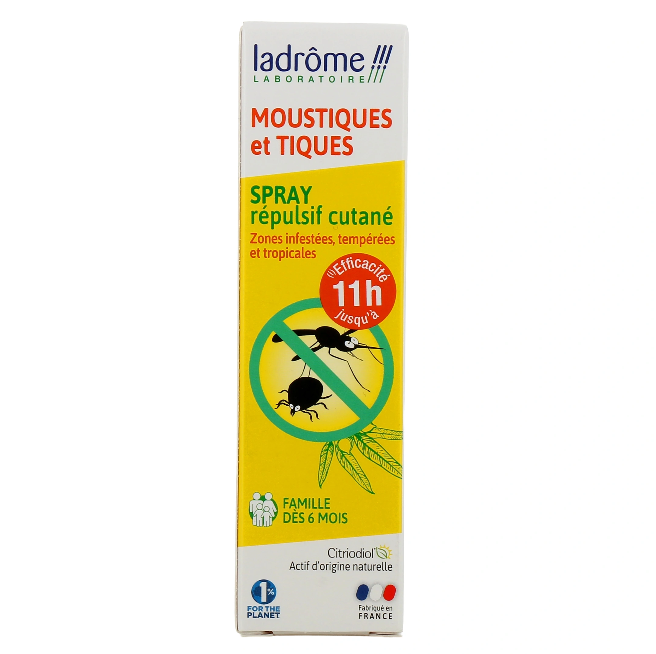 Ce spray anti-moustiques et tiques prêt à l'emploi convient pour tous les membres de votre famille (dès 6 mois). Fabriqué en France, sa formule repose sur un actif d'origine naturelle extrait de l'eucalyptus citronné : le citriodiol.