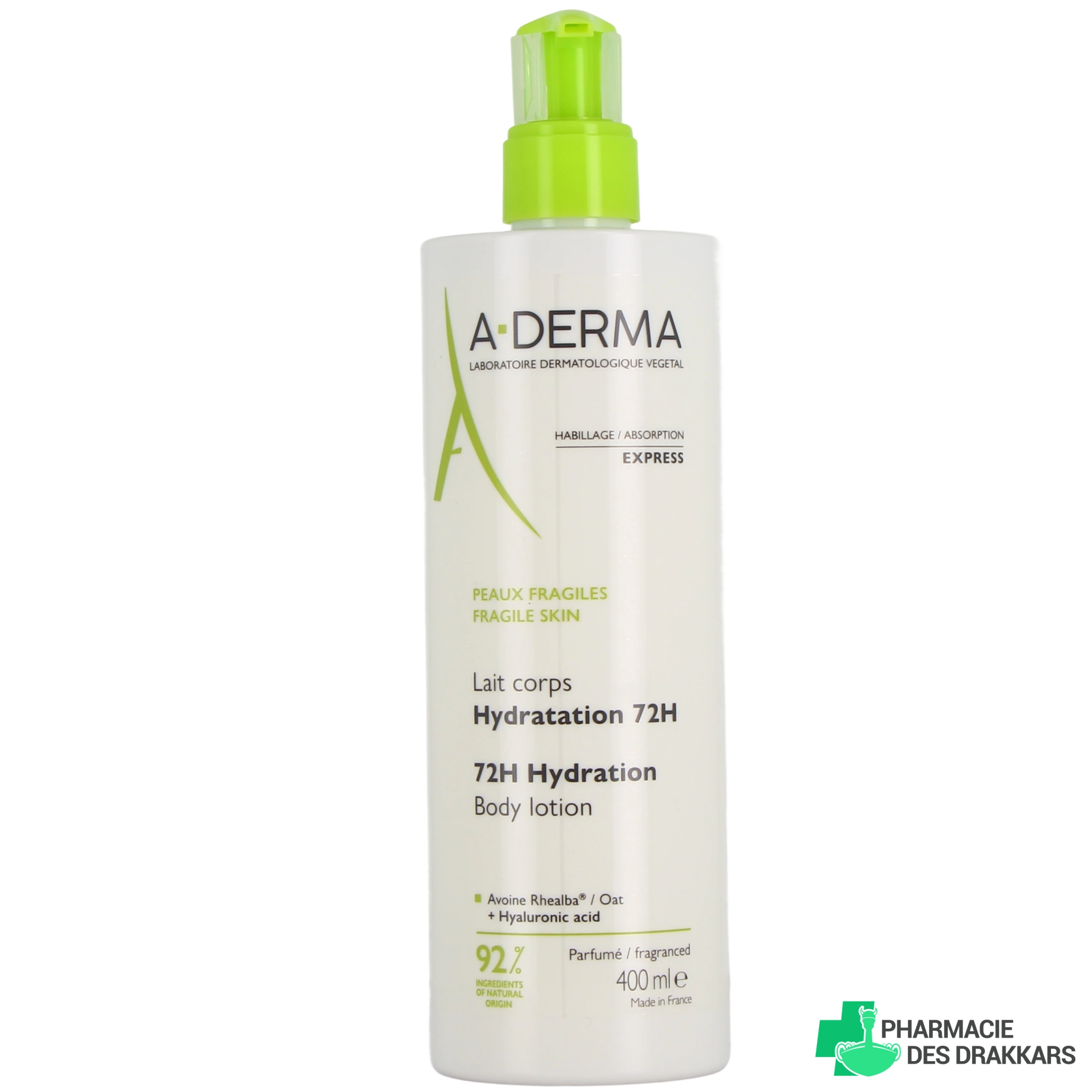 Présentations proposées sur votre pharmacie en ligne pour le lait corps hydratant A-Derma : flacon pompe de 400 ml.