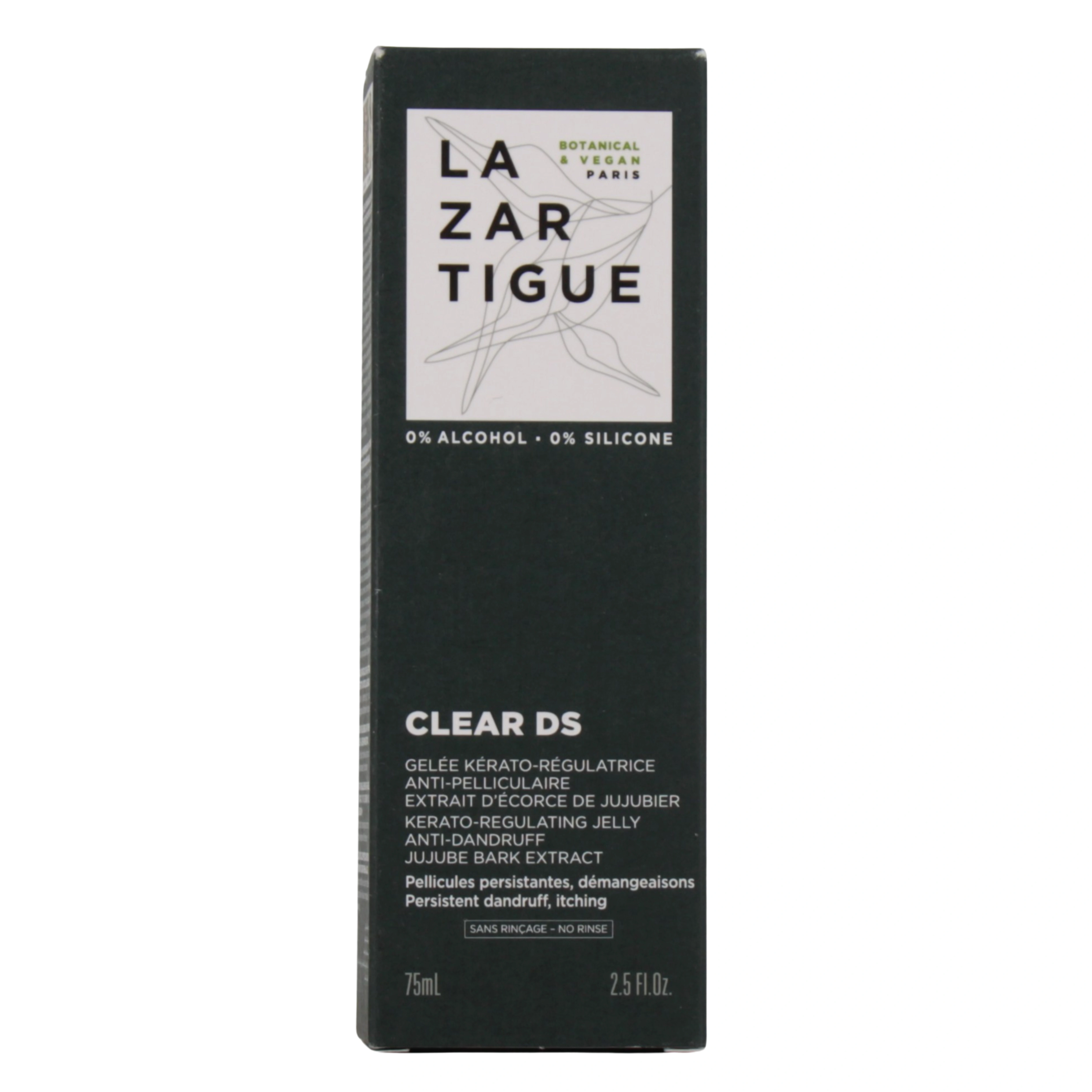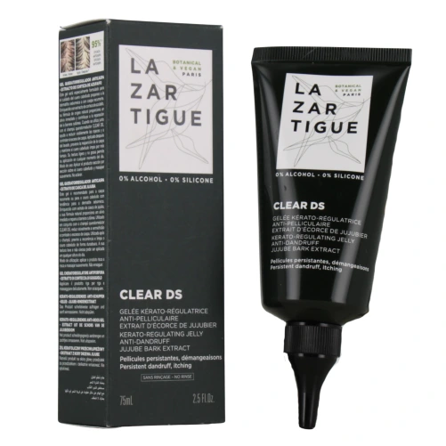 La gelée kérato-régulatrice Lazartigue Clear DS s'adresse aux personnes présentant des pellicules récidivantes et des démangeaisons du cuir chevelu. Il s'agit d'un soin sans rinçage anti-pelliculaire enrichi en extrait d'écorce de jujubier.